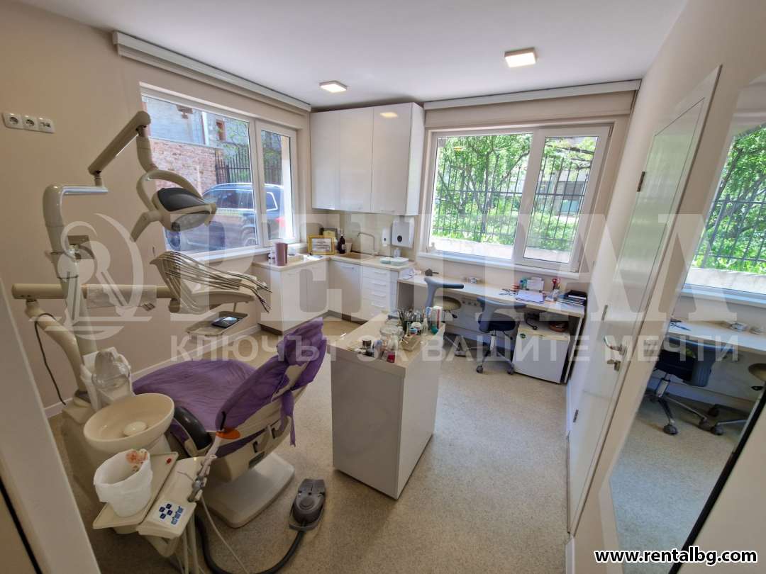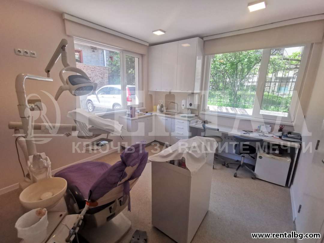 оферта 232501 ЕКСКЛУЗИВНО от Агенция Рентал, предлагаме под наем оборудван стоматологичен кабинет с площ 55 кв.м. и с възможност за създаване на лекарски кабинет до него. Кабинетите са с два различни входа. Кабинетът се до Медицинския Университет на много комуниникативно място, изцяло оборудван, окабелен, разполагащ 3 климатик, 2 тоалетни и чакалня. Агенцията разполага с ключ, за вашето удобство. За повече информация и огледи, моля свържете се с нас!
