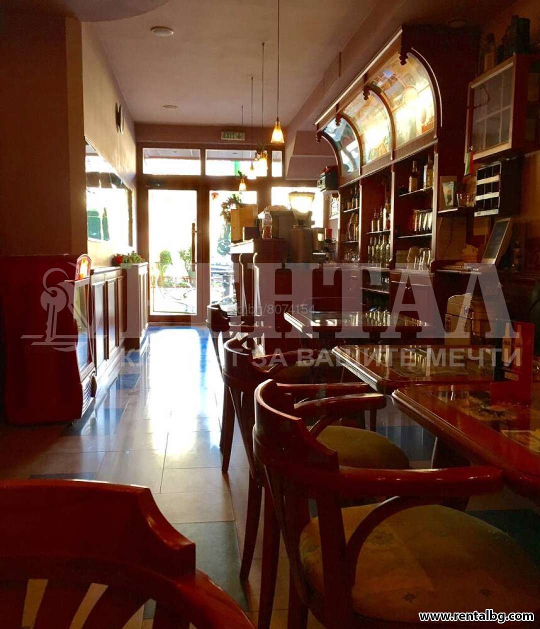 Оферта 170927 Продаваме оборудвано кафе аперитив на централен булевард - работещо.Целият обект е 70 кв.м.,седящи места вътре-30 места,отвън външна градина с разрешително - 30 места,обзаведено, лукс,кухня - оборудвана,склад с втори вход,всички нужни документи и разрешителни,готово за работа.Може да се ползва като малък кокетен ресторант с тематична кухня.Продава се като бизнес инвестиция с много добра локация.