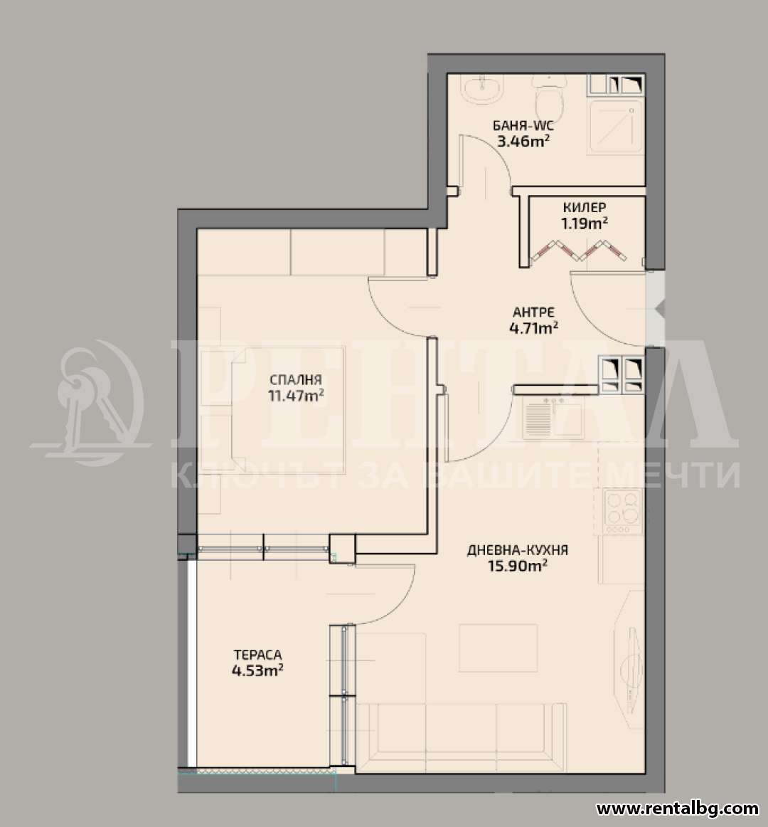оферта 243302 Предлагаме за продажба 2-стаен апартамент пред акт 16 в луксозна сграда в сърцето на Пловдив.Обща площ от 58.44кв.м, разпределена между хол с кухненски бокс, една спалня, входно антре, баня с тоалетна, една тераса.Проектът е реализиран като композиция от четири сгради със собствена озеленена зона за отдих с детски кът. Просторни и ултралуксозно завършени общи части. Модерен интериор с настилка от естествен камък и парапети от ковано желязо,електрически асансьори, стълбищно осветление с фотоклетки,видеодомофонна система, шумоизолация между отделните апартаменти, висок клас алуминиева дограма.