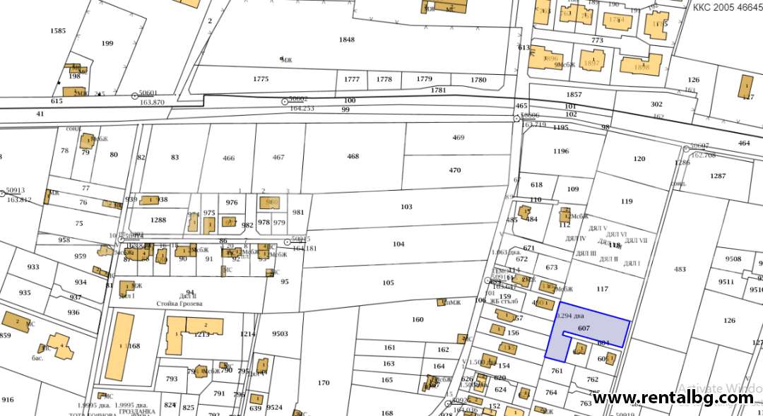 Парцелът е с правоъгълна форма , кум него има и 1/2 идеални части от частен път с квадратура 53,2 кв.м от общо 500 кв.м.