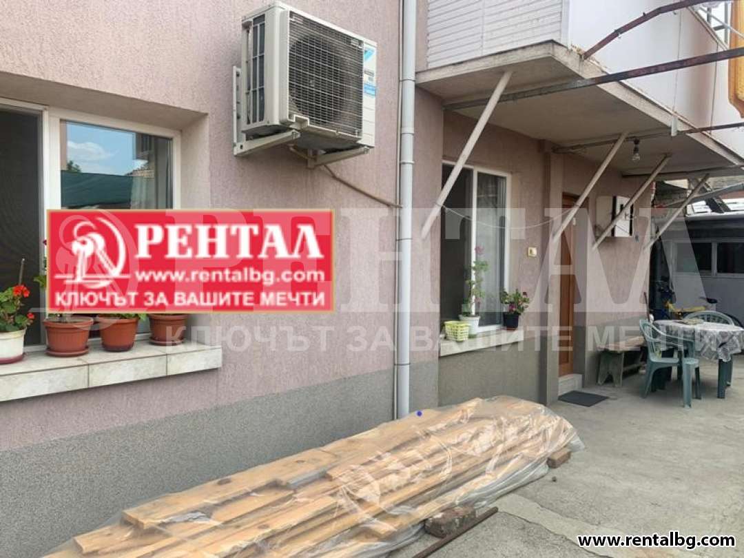 Предлагаме под наем етаж от къща с идеална част от двора. Етажът е напълно оборудван и пригоден за живеене / хладилник, смарт ТВ Sony, 2 обикновени тв, фризер, фурна, микровълнова печка, пералня, посуда - чаши, чинии, всякакви съдове/. Състои се от две спални, хол, кухня, тоалетна към едната спалня, както и обща баня с тоалетна. С възможност за паркиране на улицата пред къщата.