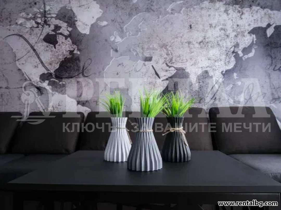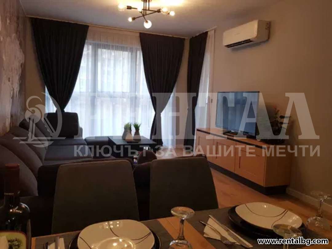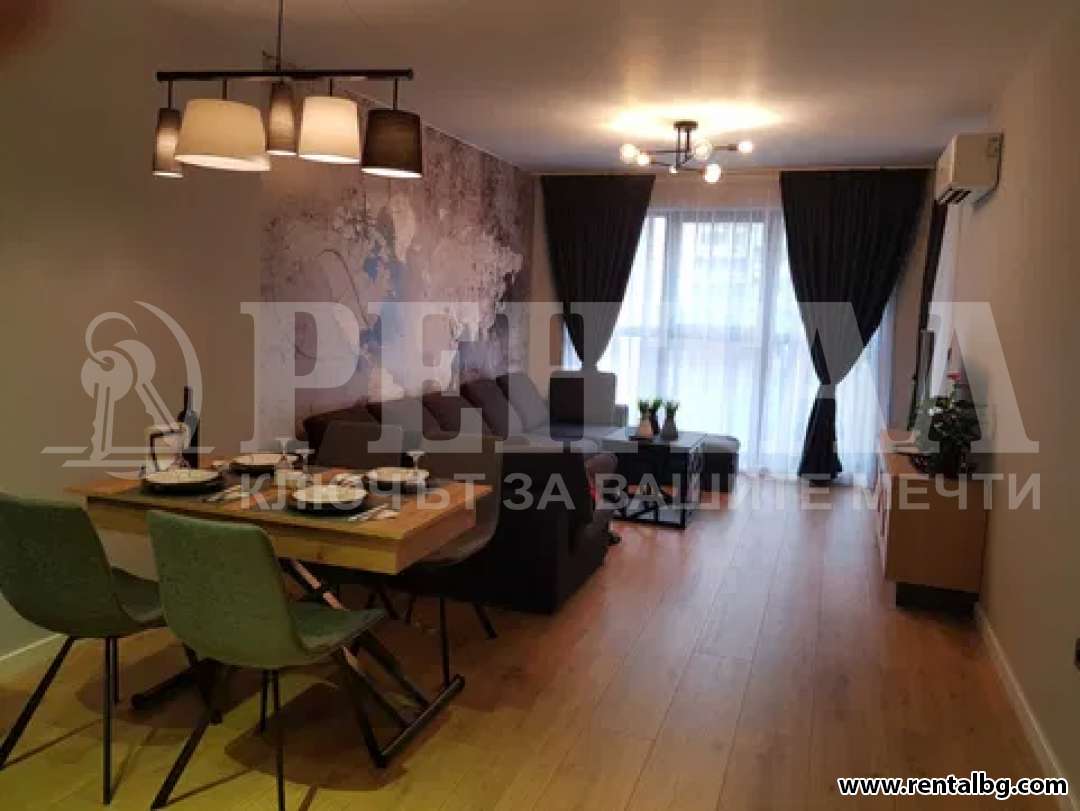 Предлагаме под наем нов апартамент с новаторски дизайн, естетичен и завършен! Италиански плочки-баня , антре и кухня! Бойлер 2 бр, пералня със сушилня AEG, миялна Bosch, вгр. хладилник Gorenje, аспиратор Faber, индукционни котлони и вгр. фурна- кухня "Диалог" с масив горни врати и ТВ модул. LG smart телевизор, Цифрова и Интернет, Multisplit климатици на Mitsubishi. Завеси Blackout и най-новите щори- Ферия! Дизайнерски полюлей, Kare. За повече информация и огледи, Моля позвънете на тел: 0888007377.