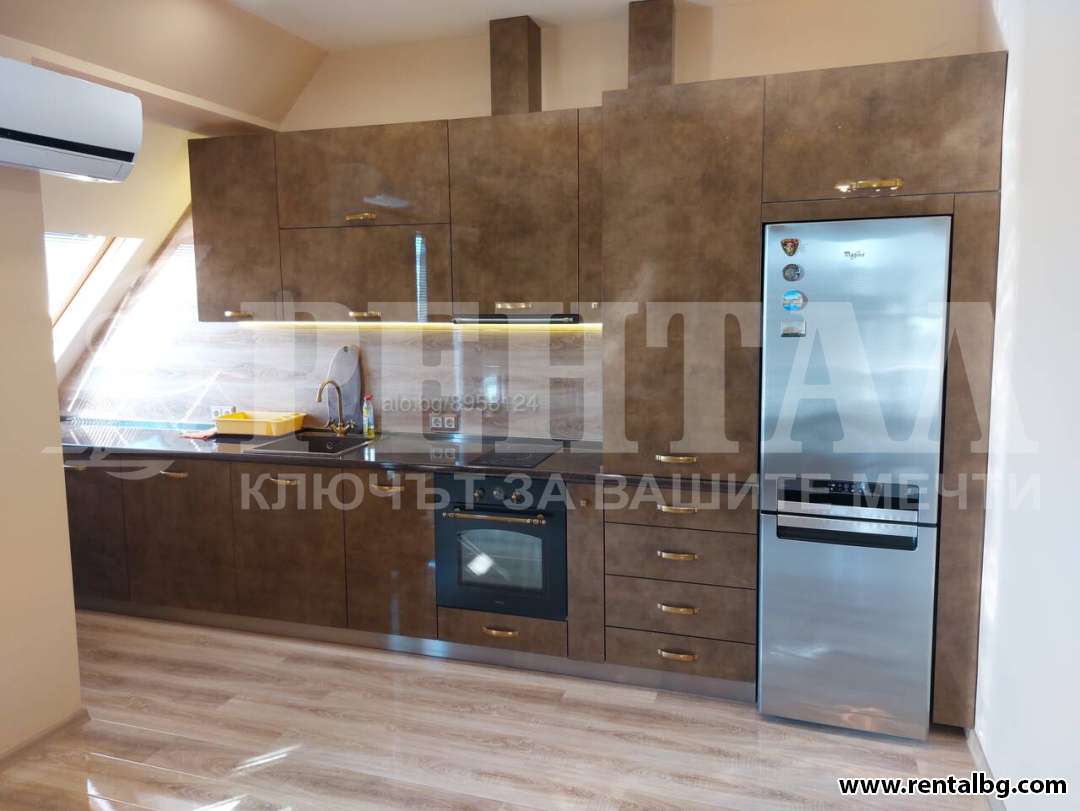 Нов апартамент. Луксозно обзаведен. Специална подова настилка, шкафове от висококачествен материал, климатик, 40’ ТВ, нова и скъпа холова гарнитура, кресла с функция ’релакс’, голям хладилник с фрийзер от висок клас, вградена печка с керамични котлони, пералня, бойлер и т.н.Контролиран достъп на входа, асансьора и всеки етаж + видеонаблюдение на вход, коридор и всеки етаж!