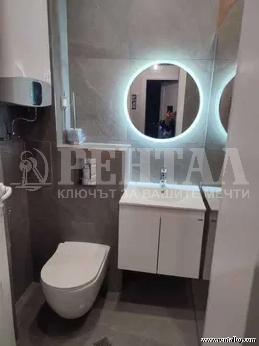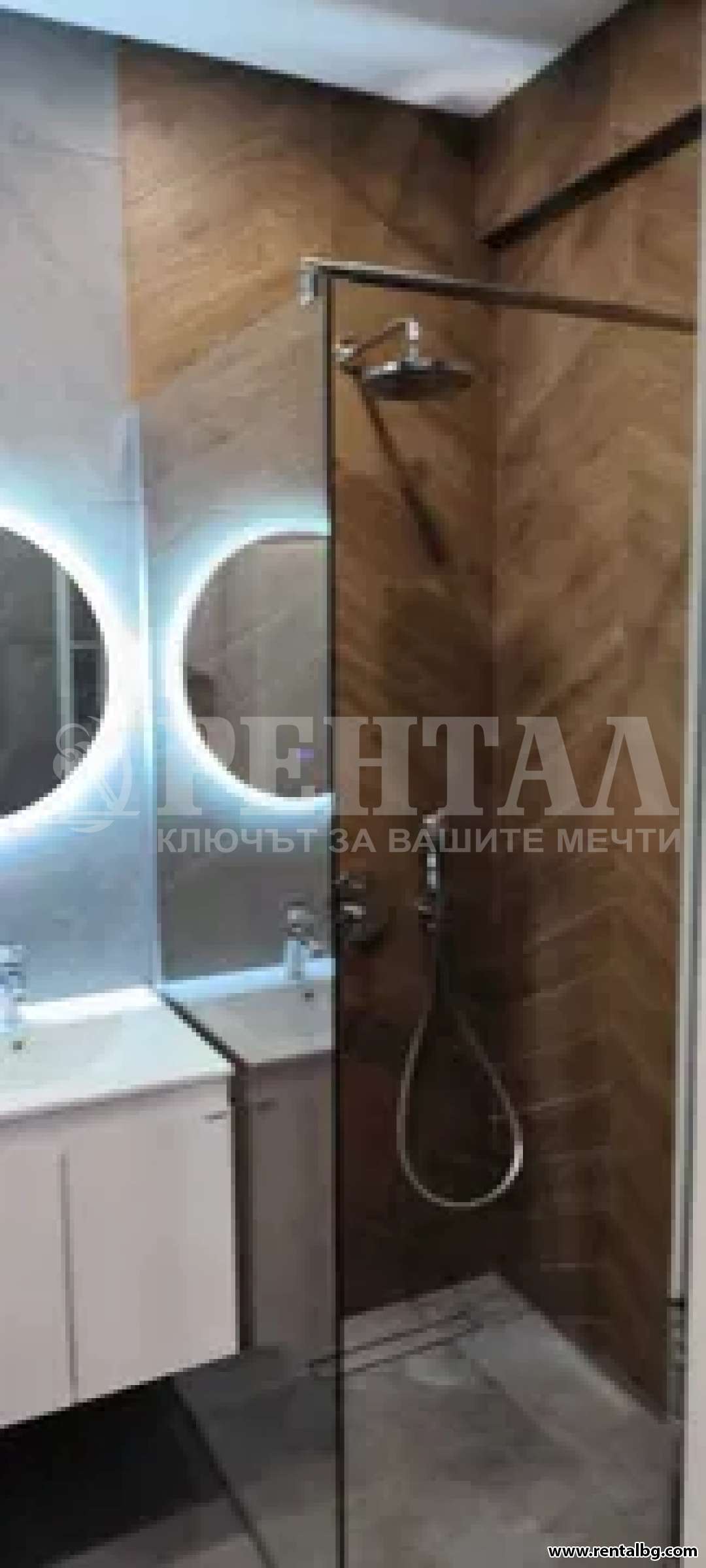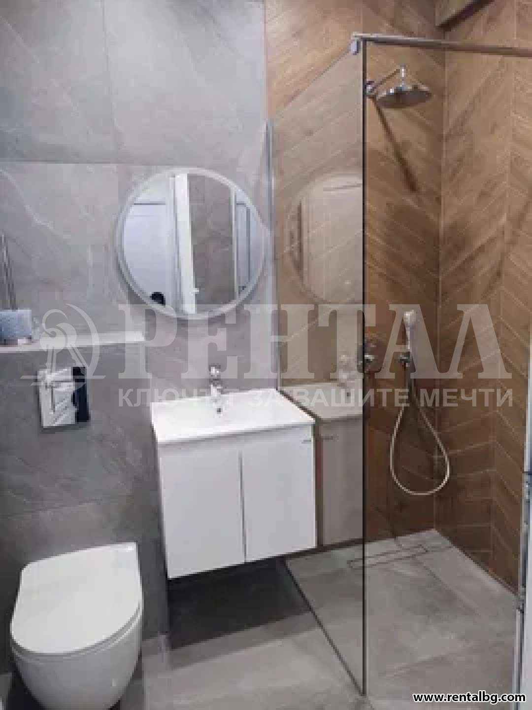 - Баня- Дизайнерска баня Моделиани- италиански гранитогрес и арматура- вградени смесител, тоалетна, душ. Двузонен бойлер Aristo Evo.