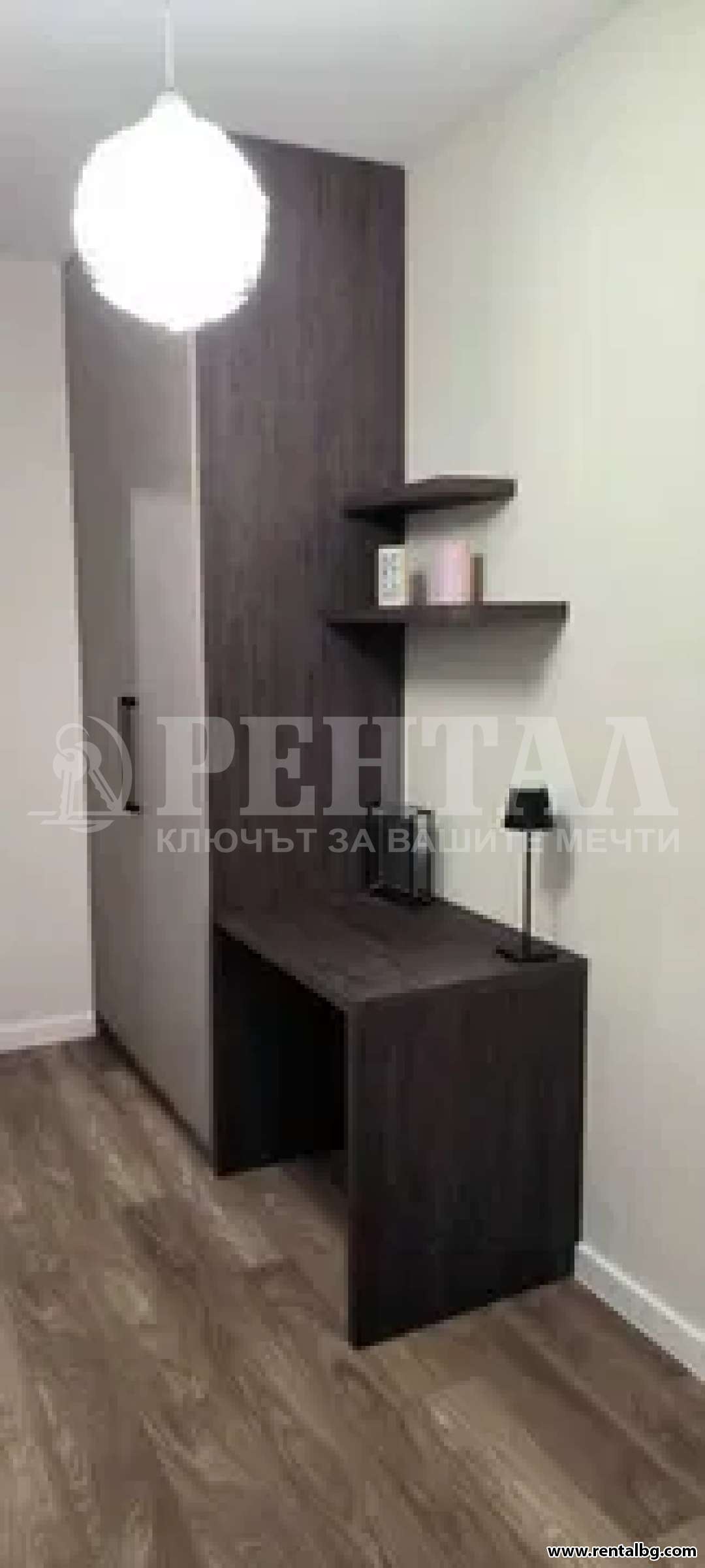 - Спалня 2- втора спалня/детска стая/ кабинет. Тази спалня е оборудвана в момента са голям вграден гардероб и бюро. Като по желание на наемателя ще се оборудва с втора спалня, легло за дете, двуетажно легло или сет от мебели за работен кабинет.