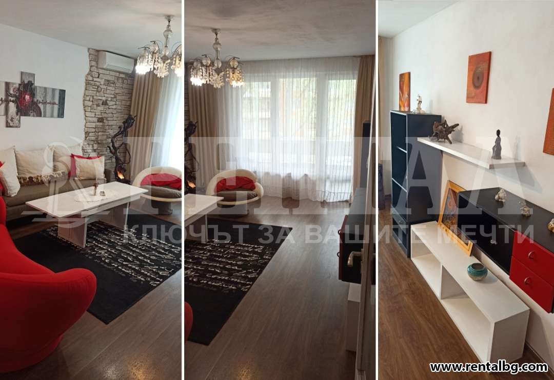 ОФЕРТА 250536 Апартаментът е с много добро разпределение на стаите, които са непреходни и се състои от: коридор, хол, кухня, две спални, перално помещение, баня и тоалетна със съблекалня между тях и две тераси. От хола и кухнята се излиза на голяма тераса гледаща към булеварда, а от едната спалня се излиза на другата, която е от задната страна на блока. Жилището е с вградени гардероби, климатик и е напълно обзаведено. Подовата настилка е теракот, паркет, ламинат и фаянс. Апартаментът е вътрешен (топъл). Изложението е изток-запад.