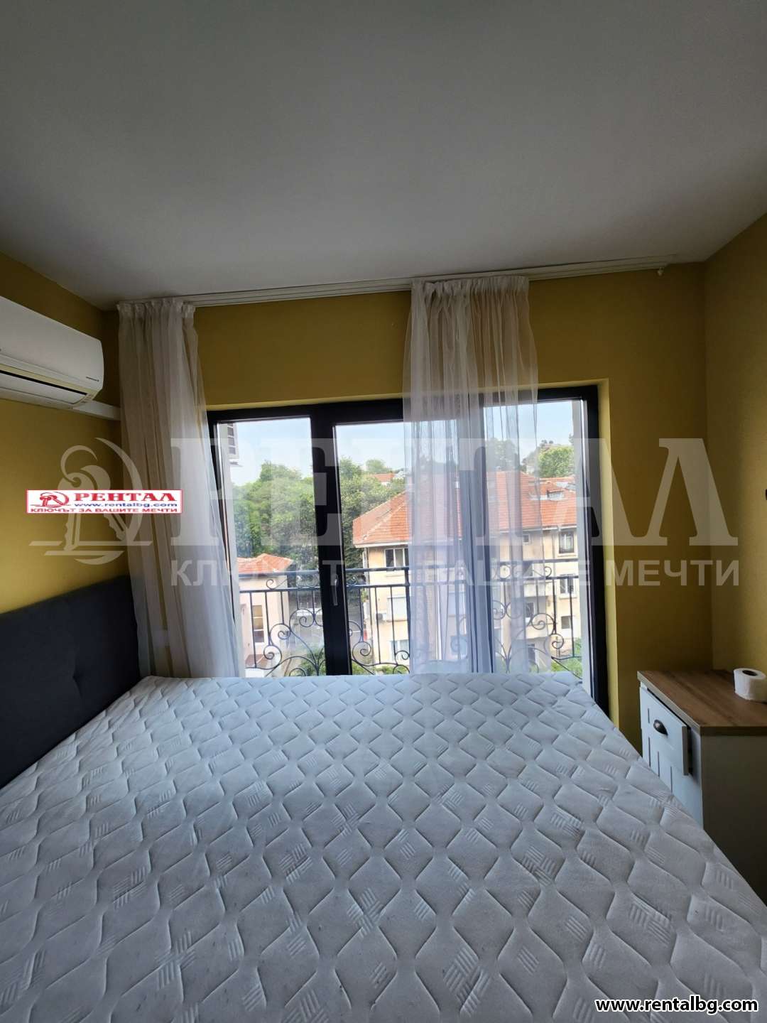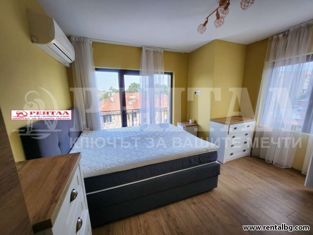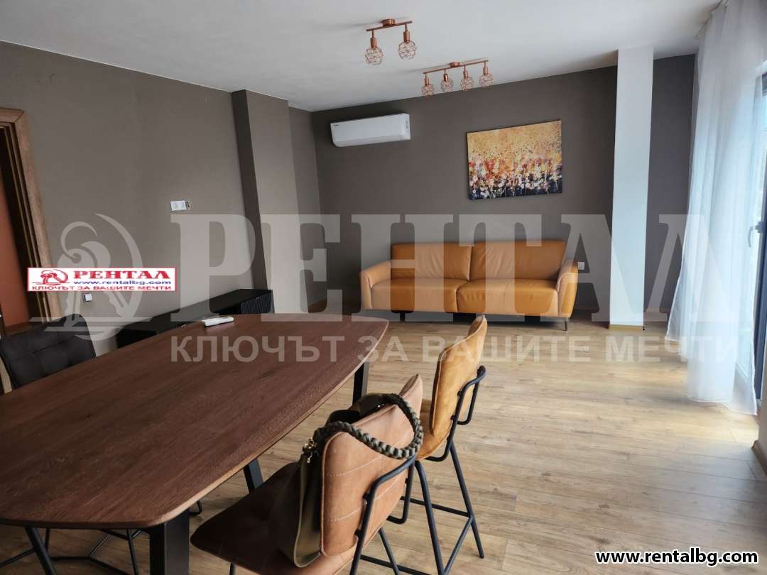 Даваме под наем лускозен апартамент с две спални и просторен хол с кухня и трапезария, баня и тоалетна и мокро помещение. Напълно оборудван с климатици във всяка стая, сушилня и пералня, съдомиялна. Жилището се намира в самия Център близо до Съдебна палата.
