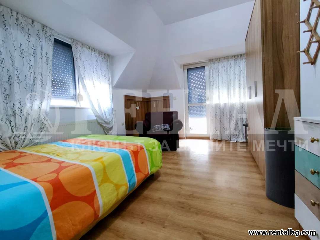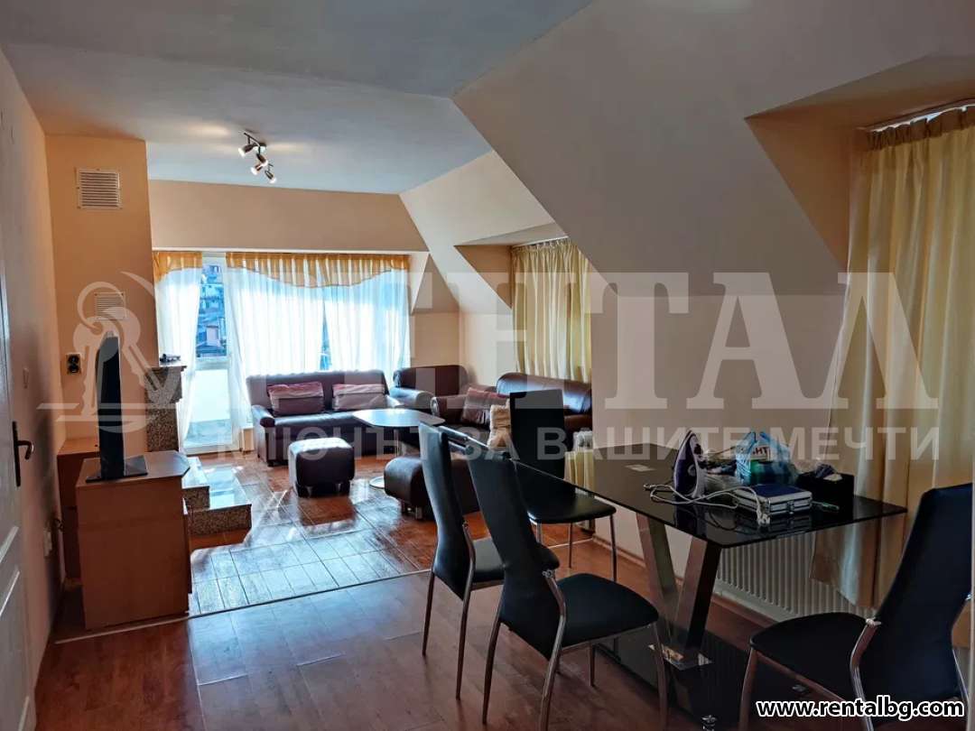 ОФЕРТА 254331 Предлагаме под наем мансарда с камина и локално парно, състои се от две спални, хол, трапезария и отделна кухня. 2 бани, тоалетна, тераси. Има кухненско и гардероб/вграден/. Изложение -изток, юг, запад. Намира се в района на Бирена фабрика , има асансьор.Напълно и луксозно обзаведен.