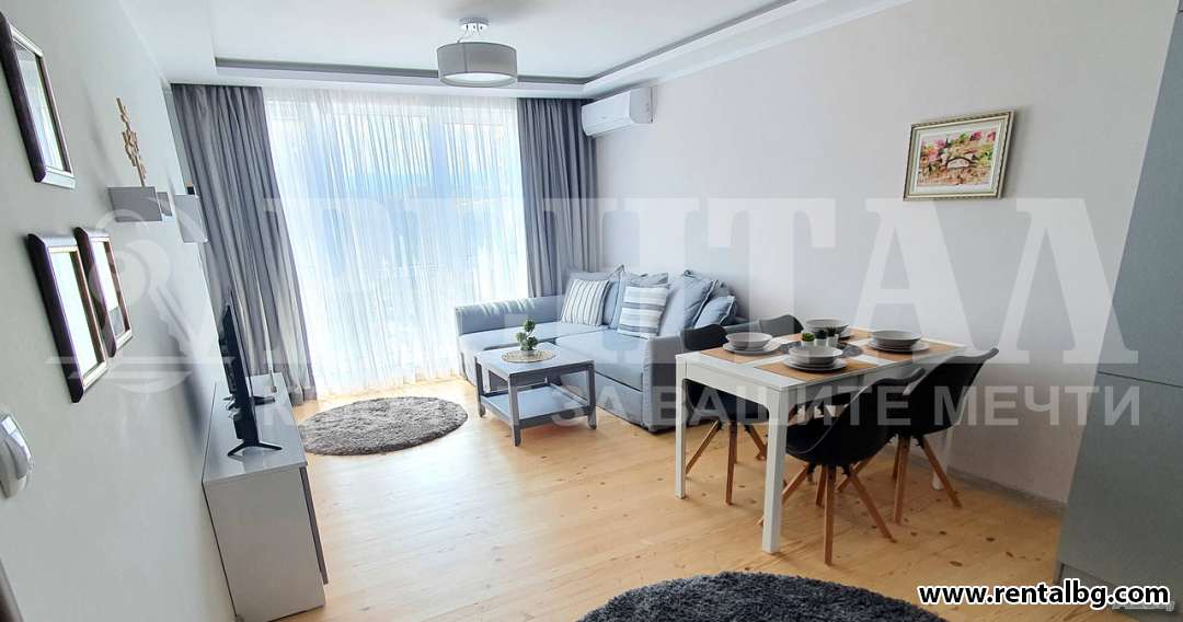 Представяме Ви стилен и луксозен двустаен апартамент с локация от съчетание на топ местоположение, придружено със спокойствие и тишина. Апартаментът се състои от входен коридор, който излъчва лукс, разполага с домофон с 7- инчов дисплей, който е свързан с камера на входа. Домофона предлага опция и викане на асансьора. Дневната е слънчева и просторна, комбинирана с кухненски бокс, изработен по изцяло дизайнерски проект, създаден, за да бъде възможно най-удобен. Разполага с едни от най-висок клас електроуреди - Gorenje, както и с голям вграден хладилник с фризер Whirlpool. За да започва сутринта Ви още по- добре, на разположение е и кафе машина на Nescafe Dolce gusto.