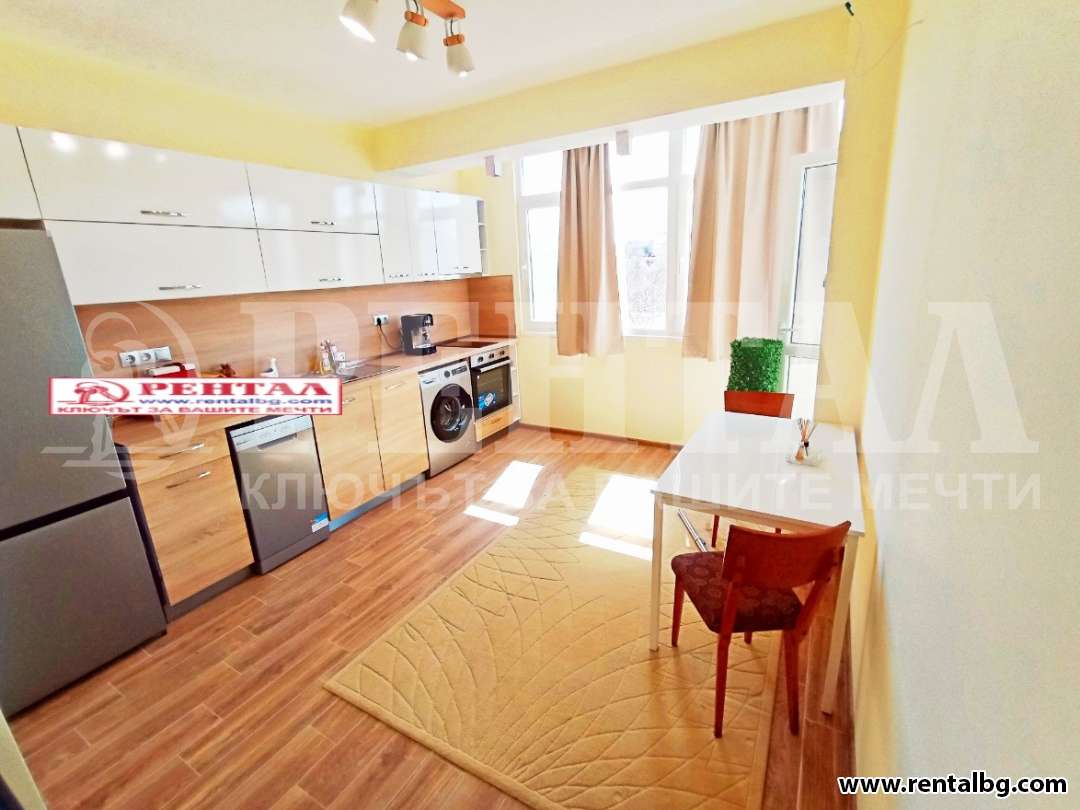 Двустаен апартамент с три отделни помещения и реална квадратура от 74кв. Състои се от кухня с трапезария, хол и преходна спалня. Изцяло южен, топъл и много светъл апартамент. Голяма тераса с добър изглед. Вход с видеонаблюдение и контролиран достъп. Детска градина в непосредствена близост. Пешеходно разстояние до Центъра.