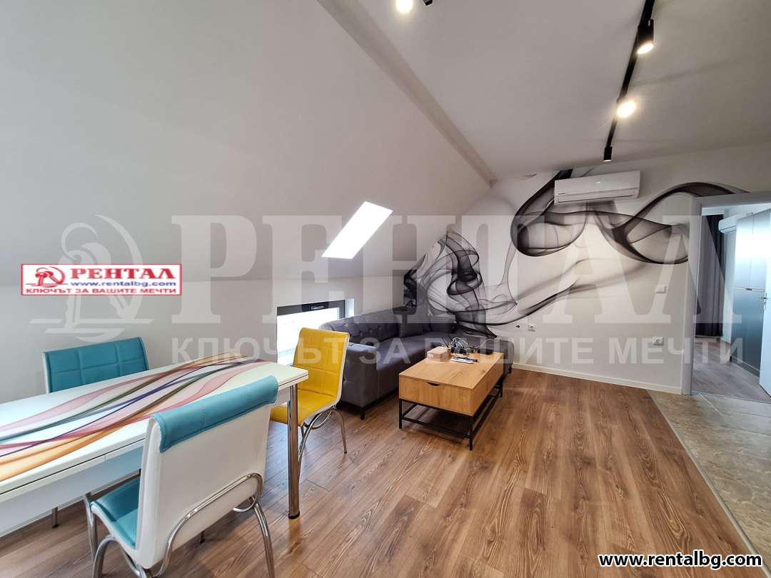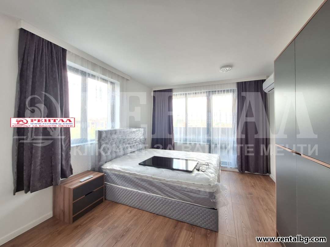 Напълно обзаведен апартамент, първи наематели, в сграда находяща се в гр.Пловдив, Пещерско шосе в близост до магазин 'Лидъл'. Жилището е разположено на пети етаж и се състои от дневна с кухненски бокс, спалня с тераса и баня с тоалетна. Предлага се напълно обзаведено със съвременни мебели и нови/гаранционни/ ел. уреди-фурна,аспиратор,котлони, хладилник, съдомиялна, пералня, телевизор. В месечния наем е включена такса за интернет и телевизия. Налични климатици. За първи наематели!!! Прилежащо към жилището е избено помещение.Сградата е с чисти и поддържани общи части. Наличен хидравличен асансьор. Възможност за наемане на подземно паркомясто