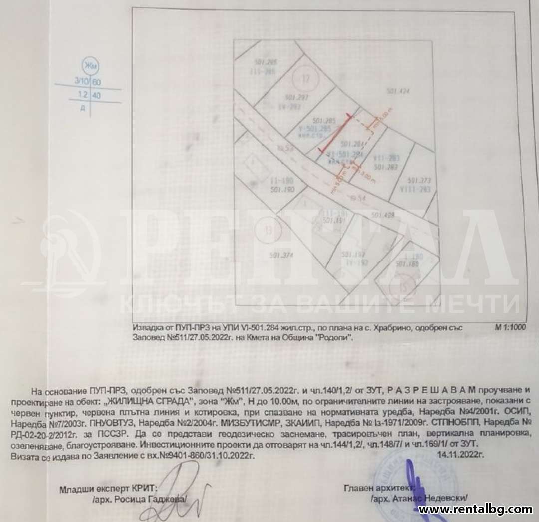 Продават с (УПИ) с площ от 366 кв.м., предназначени за жилищно застрояване. Намира се на равен терен с лице около 15 метра. В непосредствена близост има достъп до вода и електричество (на около 2 метра разстояние), което улеснява изграждането на бъдещи постройки.