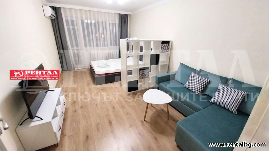 Даваме под наем апартамент в близост до Мол Плаза, спирка на градския транспорт. Състой се от спалня с всекидневна, кухня, баня с тоалента, тераса. Изложение: Юг, топъл и слънчев. Обзаведен с нискоенергийни електроуреди- фурна, стъклокерамични котлони, аспиратор, пералня, хладилник, климатик, TV. Свободно паркиране около сградата.