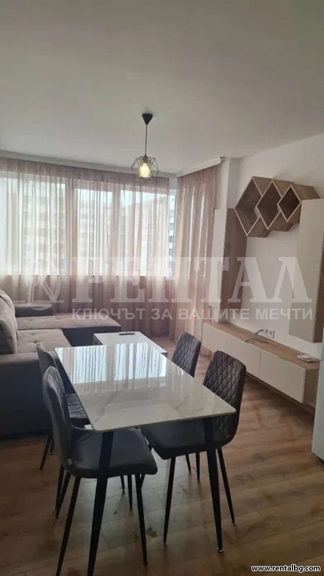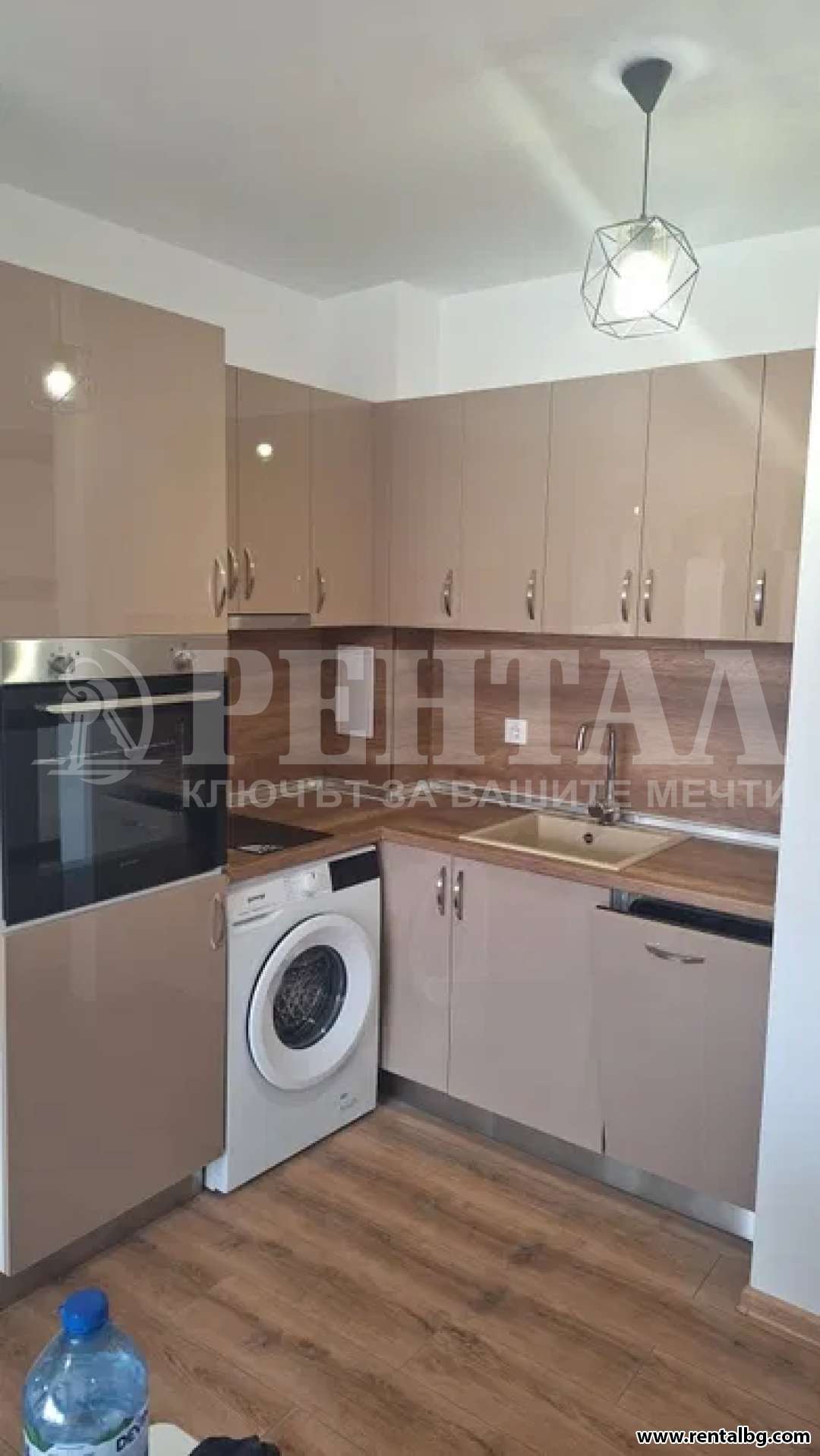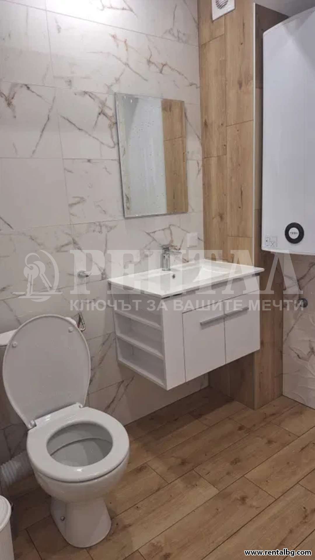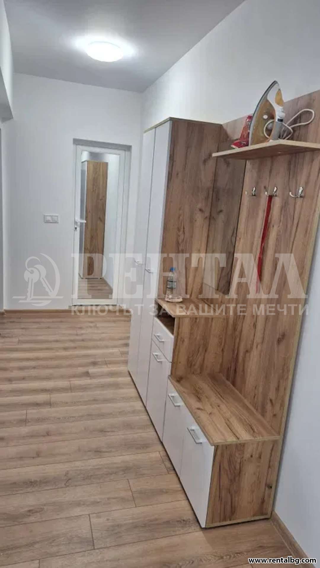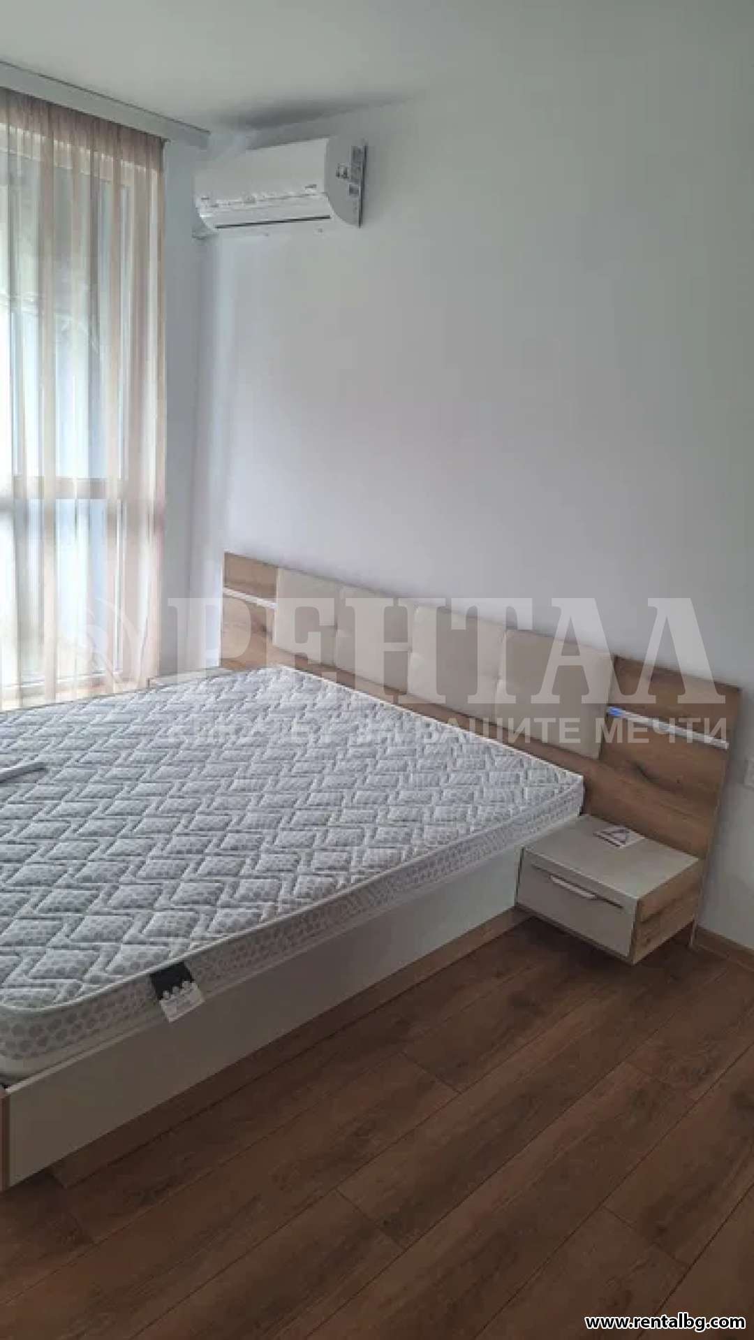 Предлагам просторен двустаен апартамент, ЗА ПЪРВИ НАЕМАТЕЛИ, в нова кооперация с асансьор. Жилището е разположено на трети етаж и се състои от хол с кухня и тераса, спалня с тераса ,коридор и баня с тоалетна. Жилището се предлага напълно обзаведено, с нови мебели и нови ел. уреди ( съдомиялна , пералня , хладилник , фурна и котлони ), климатици и телевизор.Без домашни любимци.