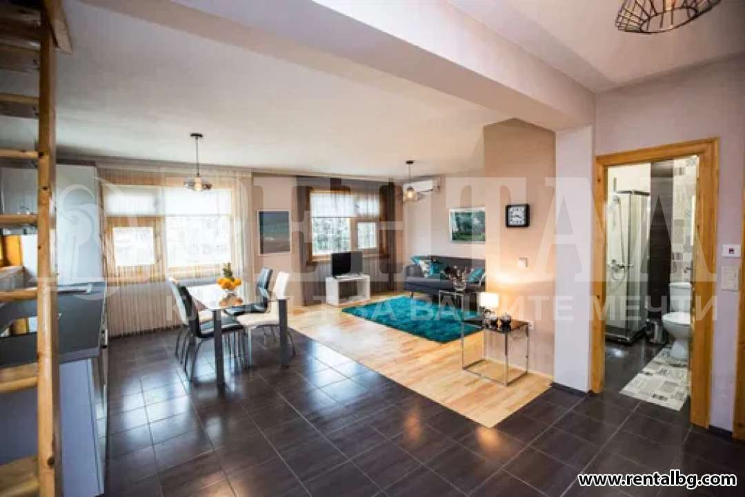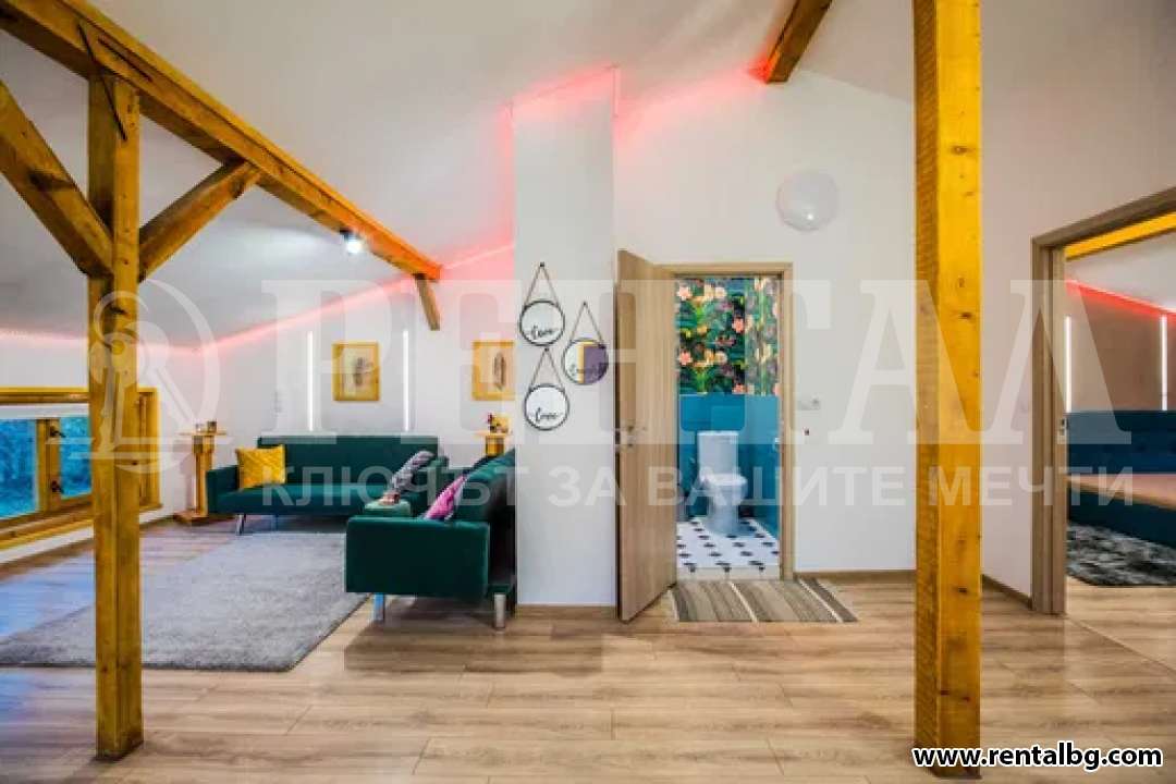 Напълно обзаведен е с всички електроуреди, вградена фурна, вграден аспиратор, вграден индукционен котлон, пералня, съдомиялна, хладилник, климатици, кабелна и интернет. Апартаментът се състои от 4 спални, 2 просторни хола, кухня и антре, 2 бани с тоалетна и гардеробна. Подовите настилки са теракот и дюшеме. Вратите и прозорците са от естествен материал, дърво, което придава много уют и топлина, а същевременно е и екологично чисто. Едно парко място Къщата се намира на много тихо и спокойно място на