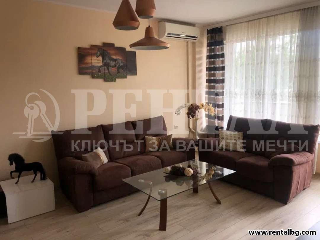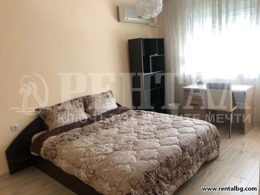 Четиристаен апартамент под наем в монолитна сграда с 2 асансьора на 20м. ВМИ и 100м от МОЛ Марково тепе. Жилището е 125кв.м. на 3-ти етаж и разполага с 2 спални (11кв.м. и 16кв.м.), голям хол - 22кв.м. и отделна кухня - 12кв.м. Самостоятелни баня и тоалетна, голямо входно антре и просторна тераса - 12кв.м. В цената са включени таксата за интернет и таксата за общи части на сградата.
