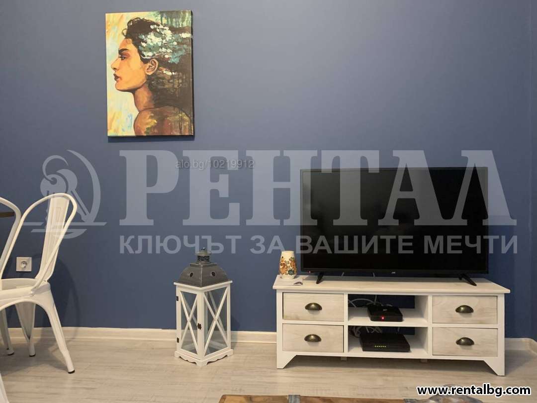 Хубав малък и уютен апартамент, една спалня, хол и кухненски кът. Дълга тераса, която обхваща целия апартамент. Обзаведен, има асансьор. Апартамента се намира на 3-ти жилищен етаж.