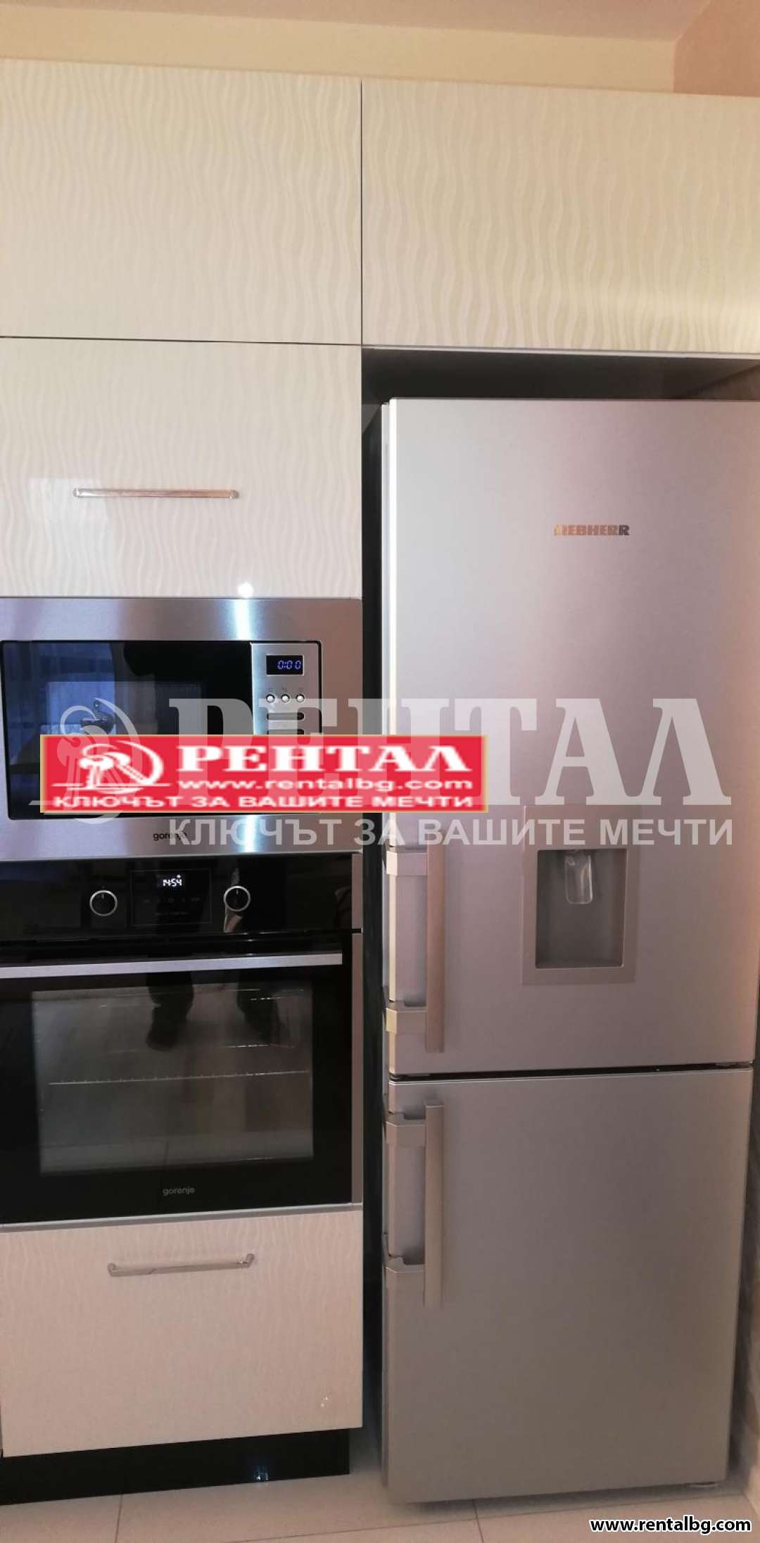 Апартаментът разполага с поръчкова кухня с вградени електроуреди, съдомиялна, фурна, микровълнова, керамичен котлон, аспиратор, пералня със сушилня, хладилник с фризер, телевизори, климатик, бойлер на водещи фирми- Gorenje , AEG, Liebherr, Ariston, Philips и Mitsubishi. С интернет и цифрова телевизия. За повече информация и огледи , Моля позвънете на 0888477523.