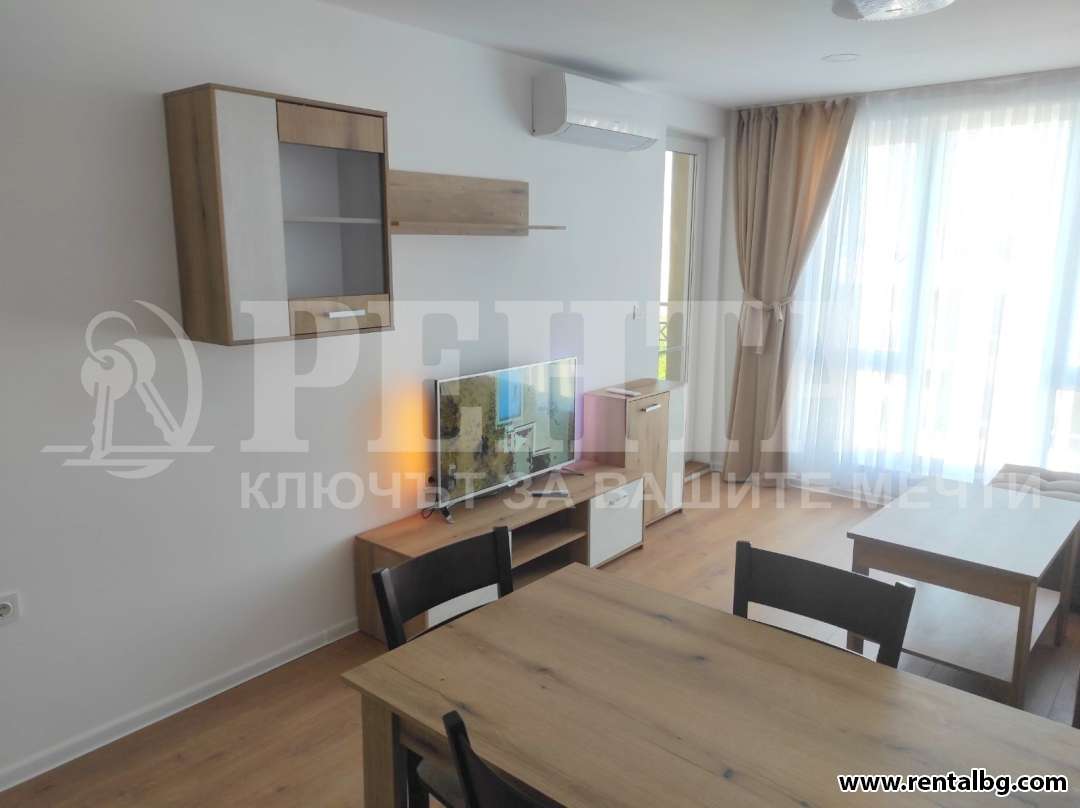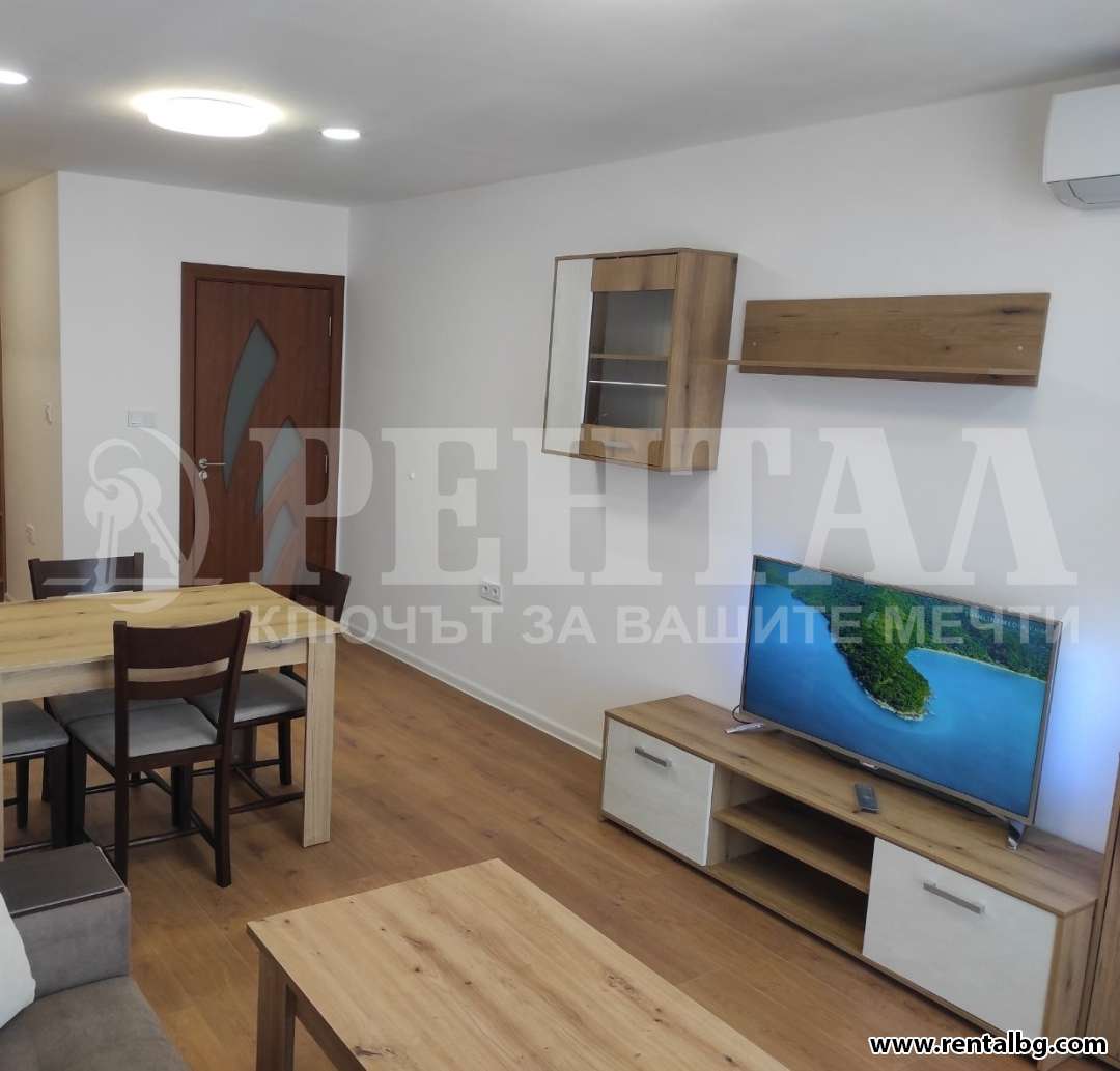 Предлагаме под наем обзаведен двустаен апартамент в нова сграда. Жилището разполага с една спалня, хол с трапезария, баня и тоалетна, тераса. О ...