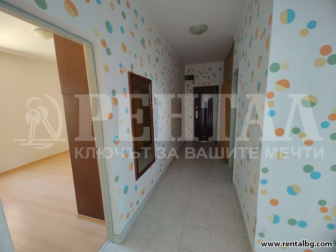 Предлагаме под наем голям и просторен апартамент в кв. Тракия, близо до Поликлиниката. Жилището разполага с две светли и просторни спални, голям и светъл хол в едно с трапезария и кухненски бокс, Г-образен коридор, тоалетна, отделно баня с перално помещение и вана, две тераси. Всички стаи са със сменена дограма. Жилището се предлага частично обзаведено, има хладилник, пералня, кухненски шкафове, два гардероба. Апартаментът е в блок с асансьор близо до магазини, училища и детски градини, детски площадки и паркове, в тих и комуникативен район, подходящ е за семейство. Отдава се под наем дългосрочно! ОФЕРТА 261095