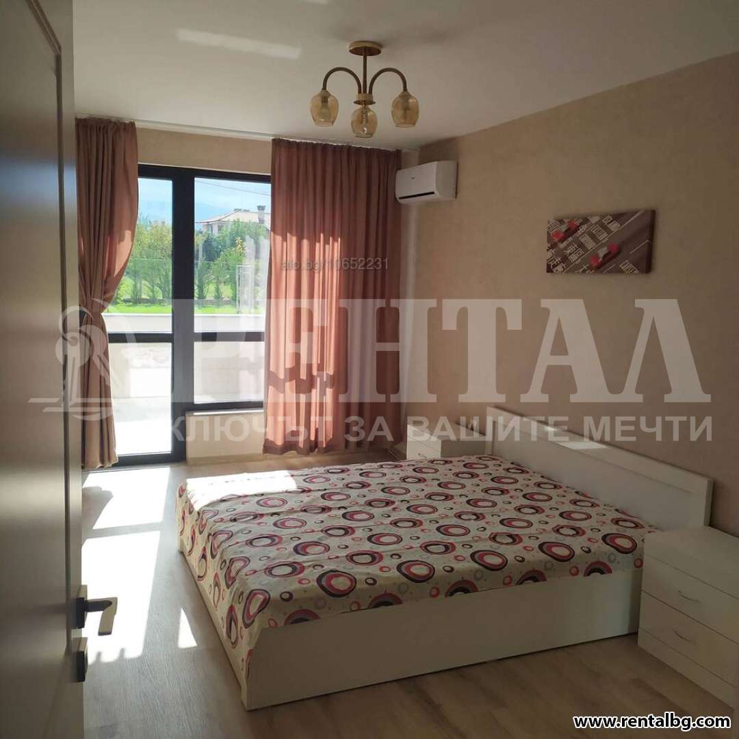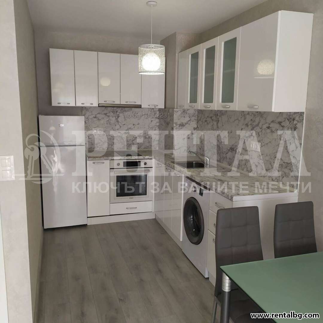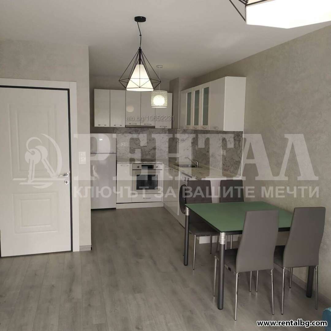 Предлагаме под наем нов двустаен, обзаведен апартамент за първи наемател, в затворен жилищен комплекс, състоящ се от хол с кухня, просторна спалня, антре, санитарен възел и голяма тераса от 20кв.м. Изложение - юг. Възможност за паркомясто - допълнително 50 евро. ОФЕРТА 261257