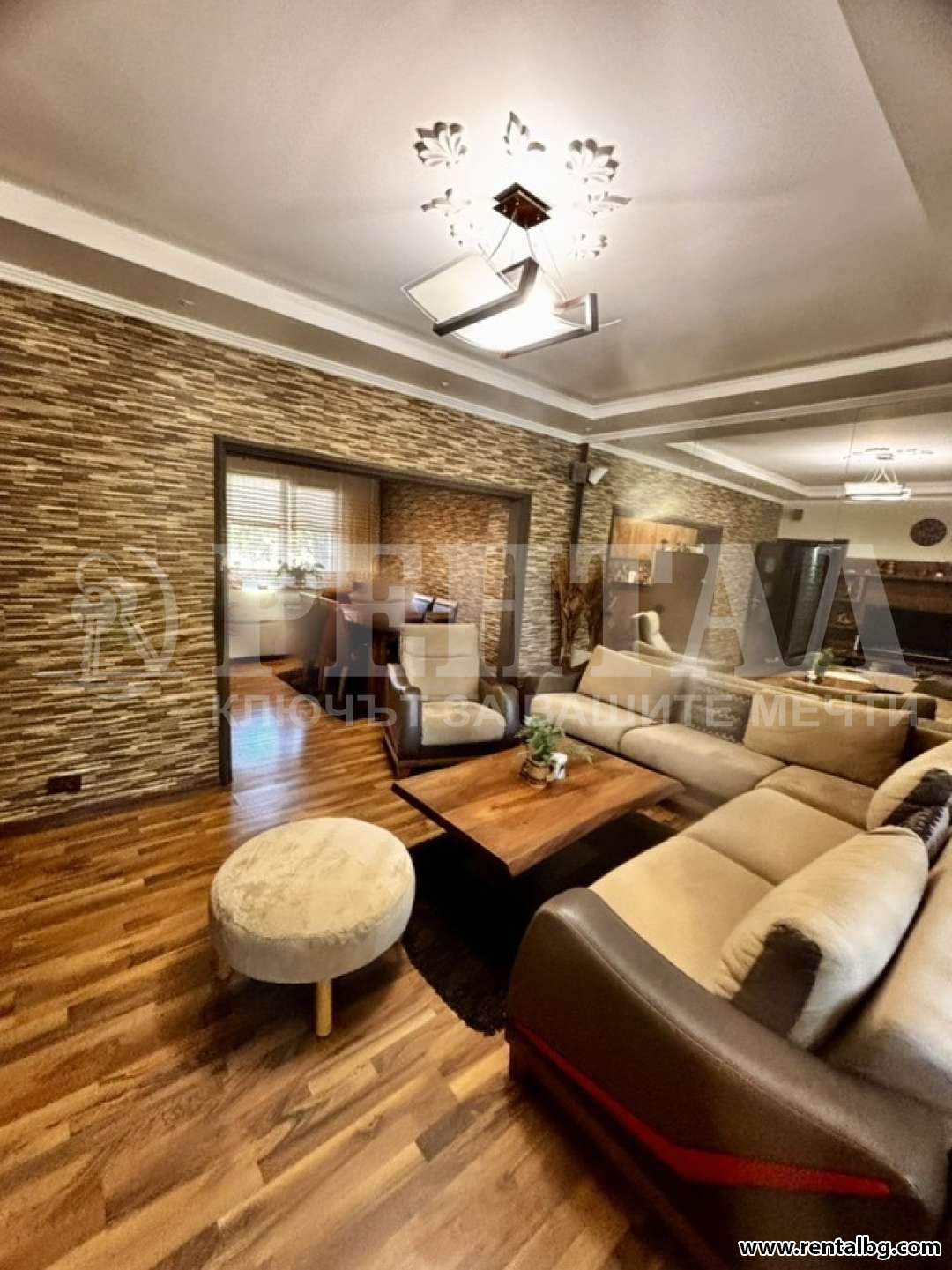 Апартаментът (96 кв.м) предлага перфектен баланс между комфорт, стил и удобство. Състои се от модерно обзаведен хол с напълно оборудван кухненски бокс и обширна трапезария, две самостоятелни спални, тоалетна, перално помещение и баня, две остъклени тераси и входно антре. Оборудван е с всички необходими електроуреди: пералня, съдомиялна, сушилня, хладилник, печка, микровълнова, стъклокерамичен котлон, електрическа кана, бойлер, климатик, телевизор, интернет и цифрова телевизия. Има блиндирана входна врата. Намира се в тих район, на пешеходно разстояние (около 3 минути) до Lidl, зеленчуков пазар, търговски център, парк, аптека, автобусна спирка, бензиностанция, училище и детска градина. Изложение север/юг.