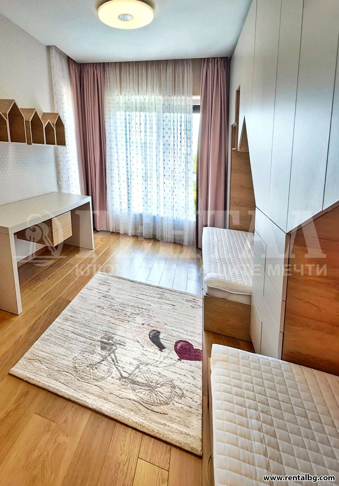 Има следното разпределение: дневна с кухня 40 кв.м, детска стая 20 кв.м родителска спалня 16 кв.м със собствена баня и тоалетна, още една баня с тоалетна коридор и тераса.