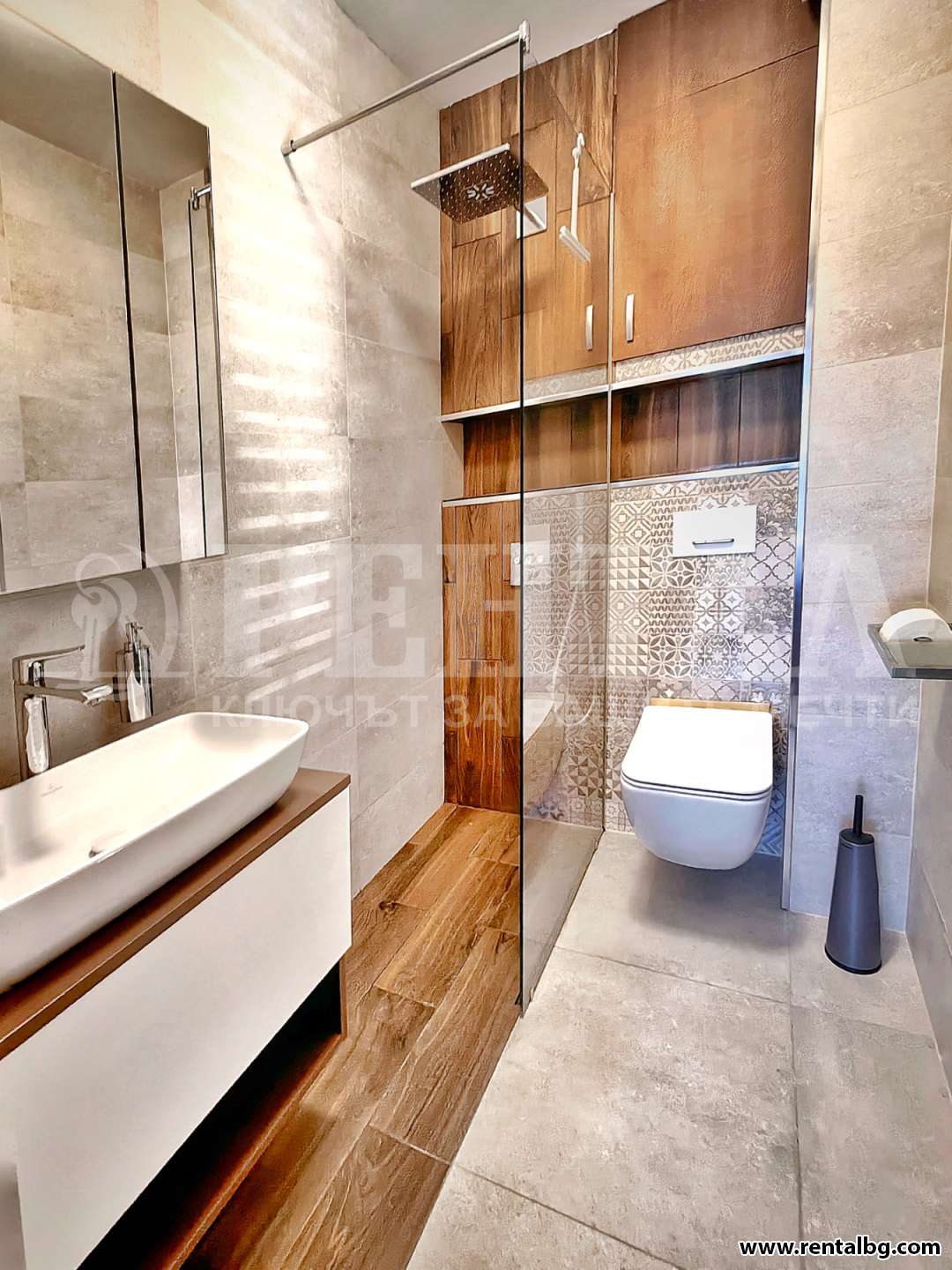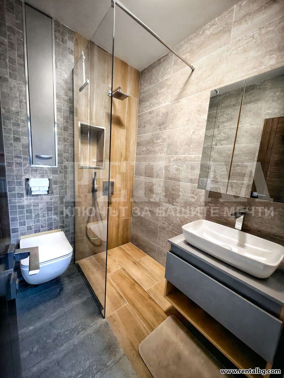 Апартамента е обзаведен с висок клас мебели и кухненски уреди от BOSCH климатици DAIKIN, санитария Villeroy Boch.