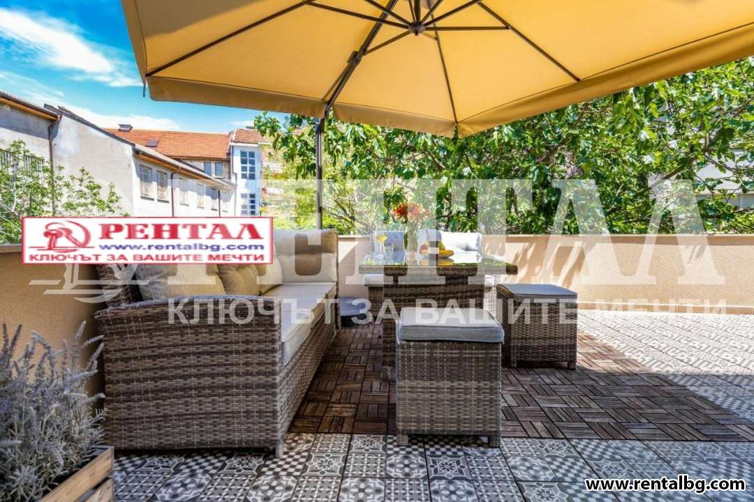 Предлагаме под наем нов, двустаен, луксозно обзаведен апартамент в топ центъра на Пловдив, на 100м от Римски Стадион и Джумая Джамия. Кооперацията е нова. Жилището разполага с хол с трапезария, спалня, баня и тоалетна, две тераси, от които едната е 25кв.м, подходяща за прекрасна лятна градина. Апартаментът е с всички удобства като има и парко място в двора на кооперацията. Допускат се нематели с ДОБРЕ ВЪЗПИТАН домашен любимец. Снимите са реални! ОФЕРТА 262313