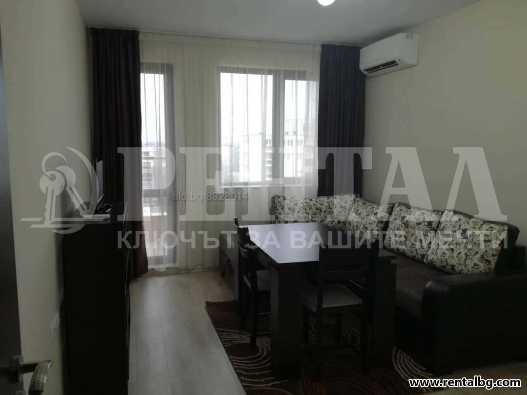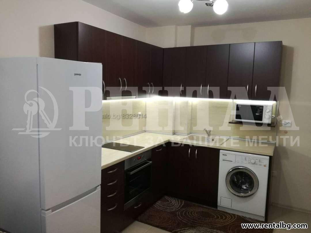 Предлагаме под наем апартамент, състоящ се от хол с кухненски бокс, спалня, баня и тоалетна, антре и тераса. Изложение - изцяло юг. Апартаментът и обзавеждането са нови и се отдават за първи наематели. Холът включва и кухненски бокс и е обзаведен с чисто нови електроуреди - вградени печка, фурна и аспиратор, пералня, хладилник, микровълнова, климатик - Daikin, Тeлевизор, има голям и удобен ъглов диван, с трапезна маса към него. Спалнята е уютно обзаведена. Сградата разполага с два асансьора. В близост до комплекса са магазини Лекси, Триумф и Lidl, Хирургиите на Пещерско шосе, като на 5 минути пеша е Гребната база, а на 10 минути пеша е Мол Пловдив. ОФЕРТА 263414