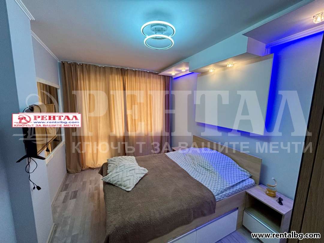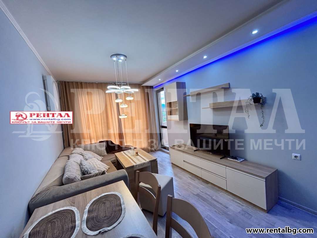 Предлагаме под наем двустаен апартамент, разположен в гр. Пловдив, район Южен. Жилището се намира на втори етаж в тухлена сграда и се отличава с югозападно изложение, което осигурява много светлина и уют през целия ден.