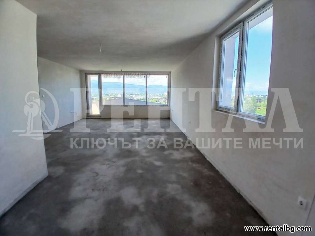 - Разпредерение: дневна с трапезария и кухненски бокс, голяма панорамна тераса с изглед към Родопите, детска спалня с баня и тоалетна, родителска спалня с баня и тоалетна, трета спалня или кабинет, килер, тераса към спалните, входно антре.