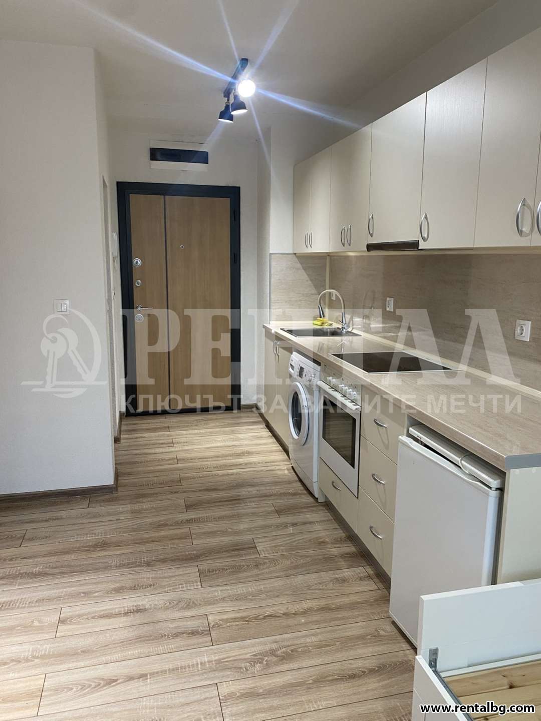 оферта 254937 ЗА ПЪРВИ НАЕМАТЕЛИ ! Рентал предлага нов еднопространствен апартамент в комплекс Томов Плаза. Жилището е обзаведено с електроуреди- хладилник, керамични котлони,вградена фурна, пералня, климатик , Леглото е новао и се разтяга двойно. Цена 500лв.
