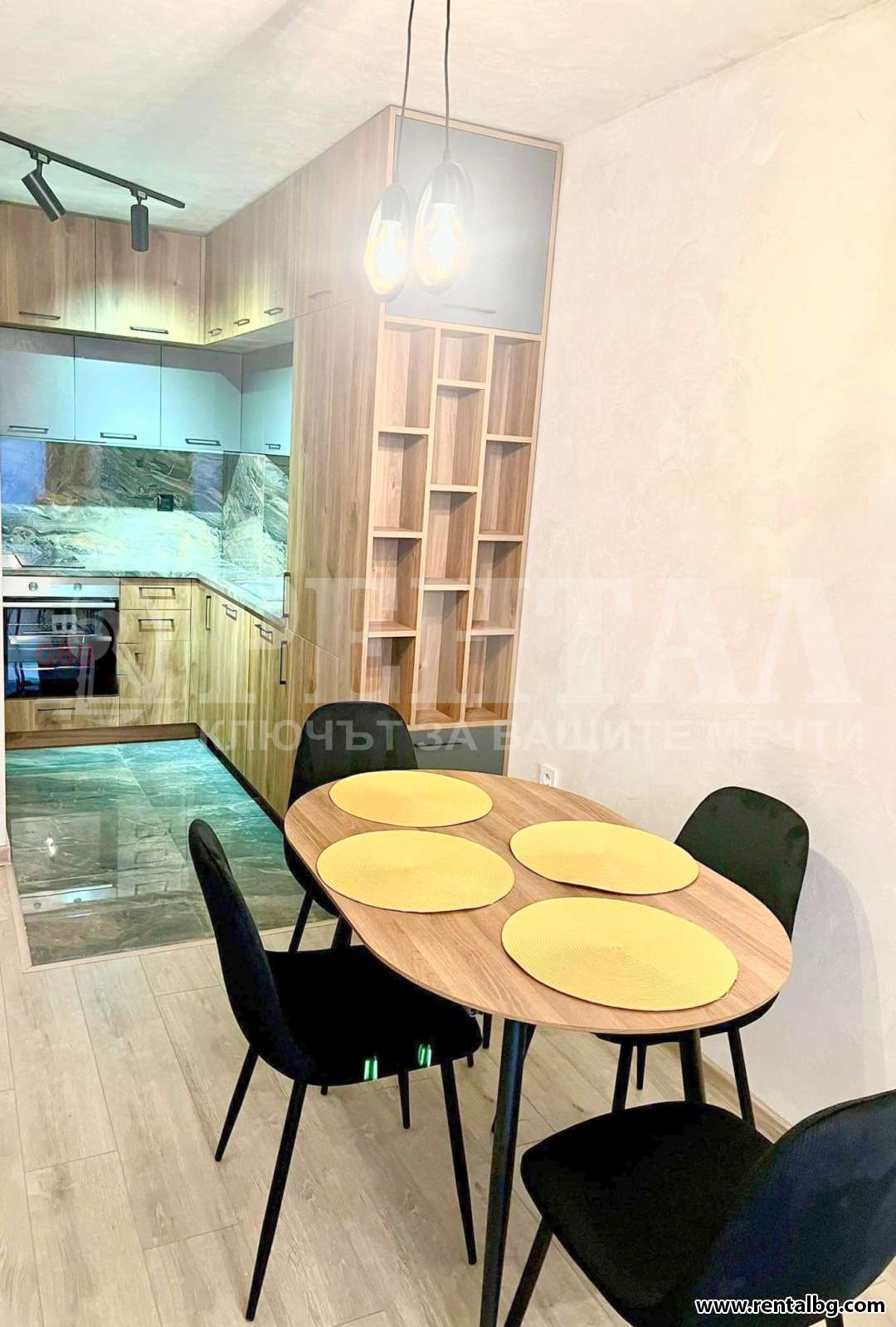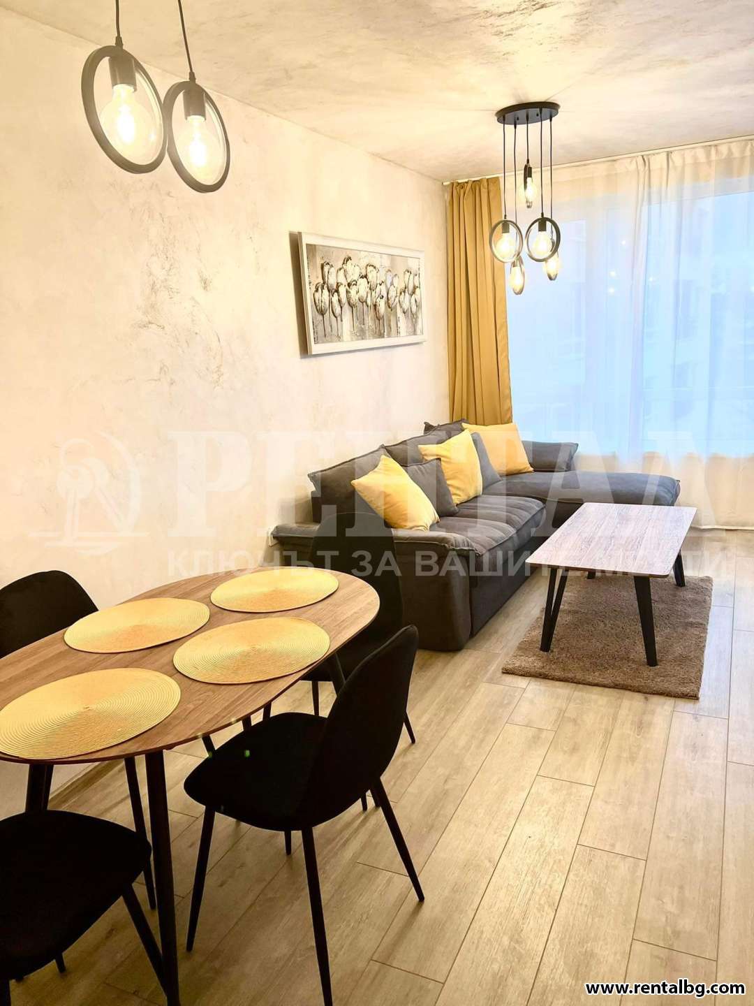 Под наем двустаен 71кв. м. апартамент с парко место. Жилището разполага със спалня и хол с трапезария, баня и тоалетна, тераса. Апартаментът е ...