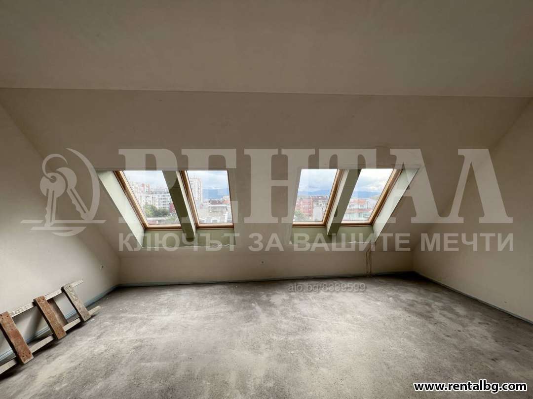 Прекрасна мансарда в центъра на кв. Въстанически в близост до Кауфланд, 1-во РПУ, кметството, бензиностанция OMW, ресторант Марс, и много други ресторанти, кафенета, аптеки, спирка на градски транспорт. На последен етаж, с голяма панорамна тераса, като частично (18кв.м.) може да се приобщи.