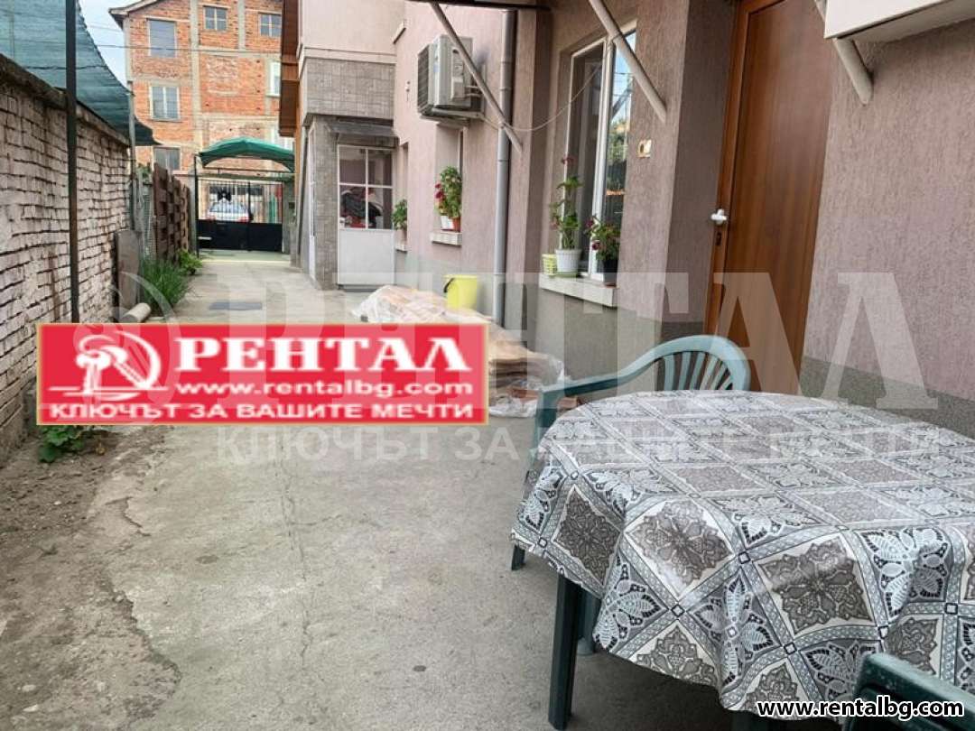 Предлагаме под наем етаж от къща с идеална част от двора. Етажът е напълно оборудван и пригоден за живеене / хладилник, смарт ТВ Sony, 2 обикновени тв, фризер, фурна, микровълнова печка, пералня, посуда - чаши, чинии, всякакви съдове/. Състои се от две спални, хол, кухня, тоалетна към едната спалня, както и обща баня с тоалетна. С възможност за паркиране на улицата пред къщата.