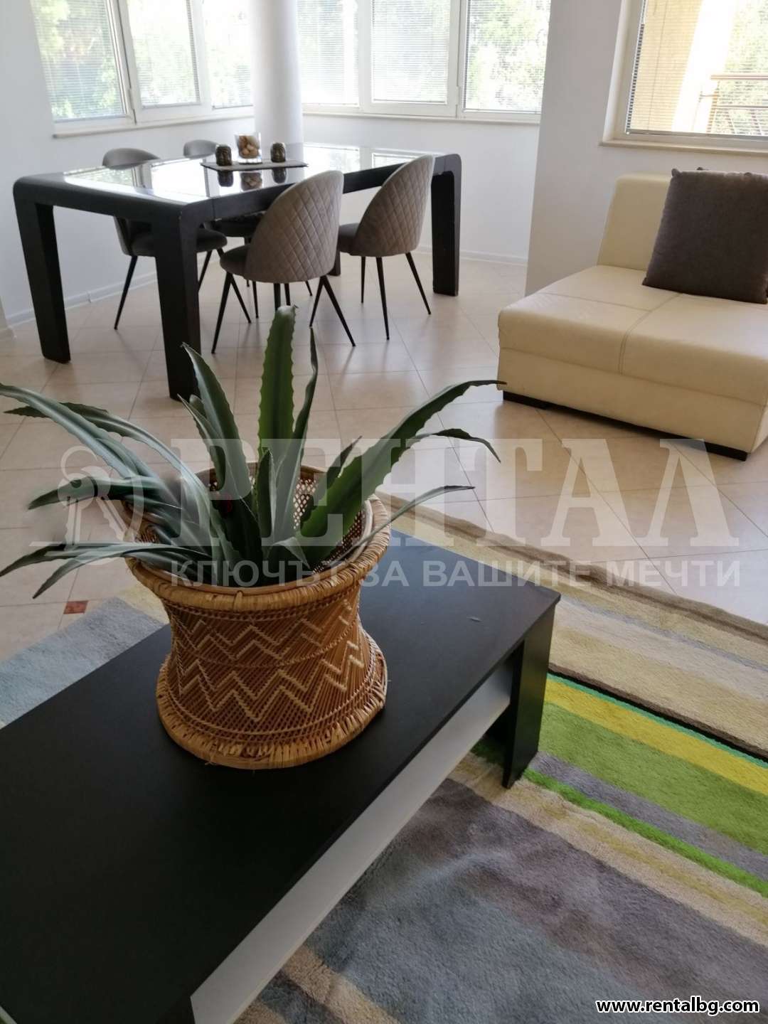 Предлагаме под наем луксозно обзаведен светъл и просторен апартамент в съвременна сграда разполагащ с голям хол, трапезария с обособена к ...