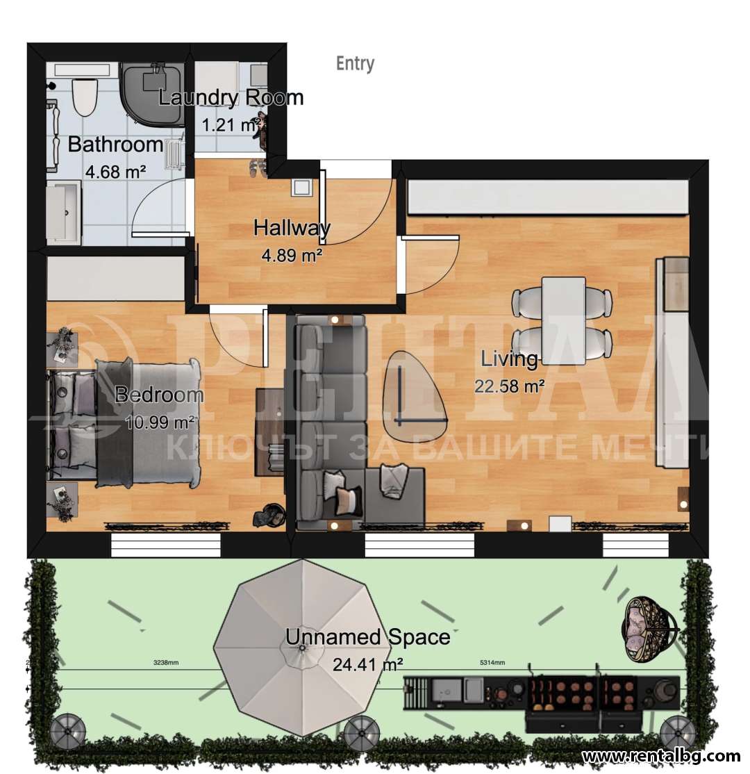 Перфектното разпределение за двустаен апартамент с една спалня, баня/тоалетна, склад/перално помещение, антре, всекидневна с кухненски ъгъл и собствен двор. Същевремнно апартамента е вътрешен, ситуиран изцяло в източната част на сградата и притежава 23м2 собствена градина, оградена и отделена от останалите части на имота. Дворът е с перфектното за пловдивски регион – източно изложение, което го прави идеален за използване през по-голямата част от годината, включително през типичните за Пловдив летни горещини. Намира се в сграда с общо 12 апартамента изпълнена с уникални за града стандарт и оборудване.