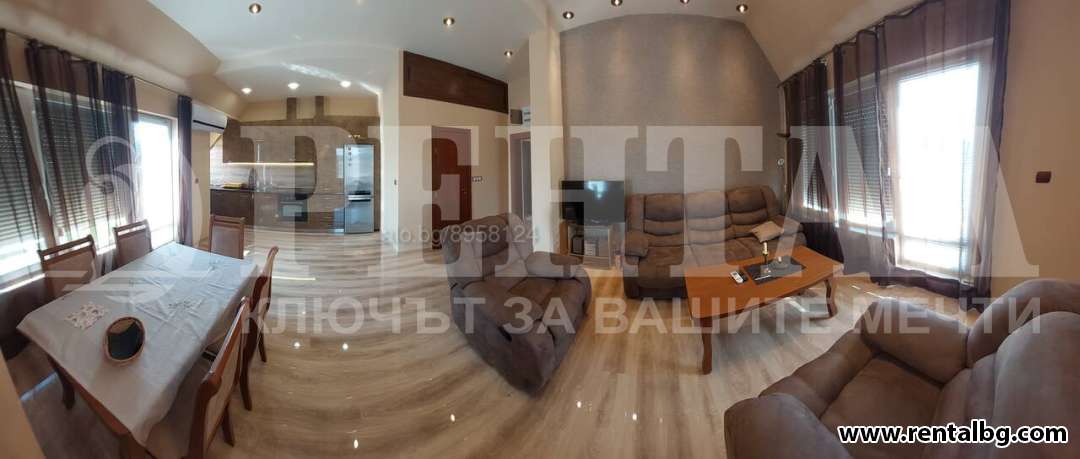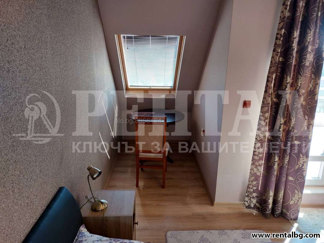 ОФЕРТА 249902 Предлагаме под наем в непосредствена близост до Гребна база.116 кв.м. Антре, спалня, хол+кухня, баня с тоалетна + 2ра баня с вана, таванско помещение за съхранение на вещи, огромна тераса с панорамна гледка -последен етаж.