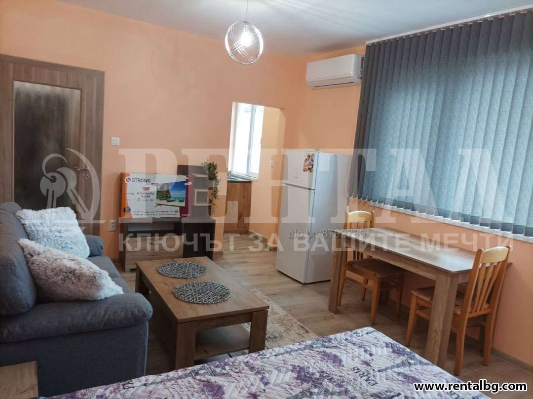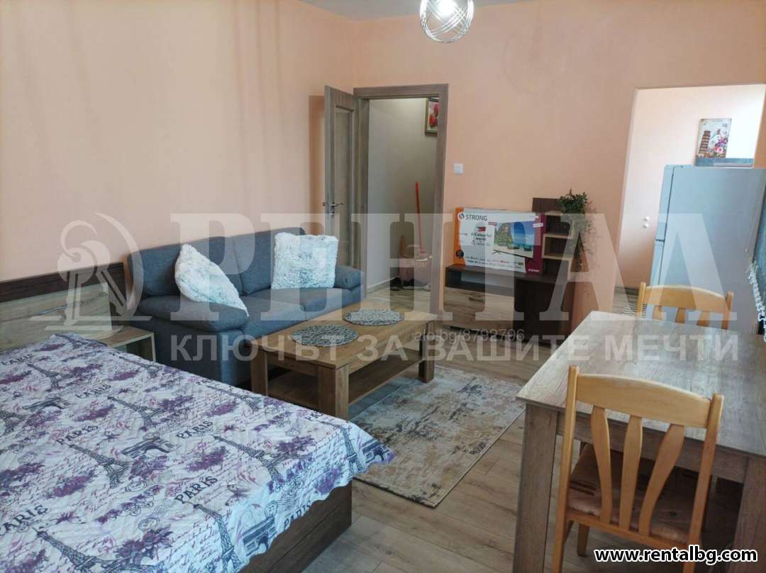 Предлагаме под наем след пълно обновяване едностаен апартамент в панелен блок на 4-ти етаж от 8 с асансьор. Хол с отделна кухня и тераса към хола. Обзавеждането е чисто ново с всички необходими мебели и електоуреди. Голям гардероб с надстройка в коридора. ОФЕРТА 257175