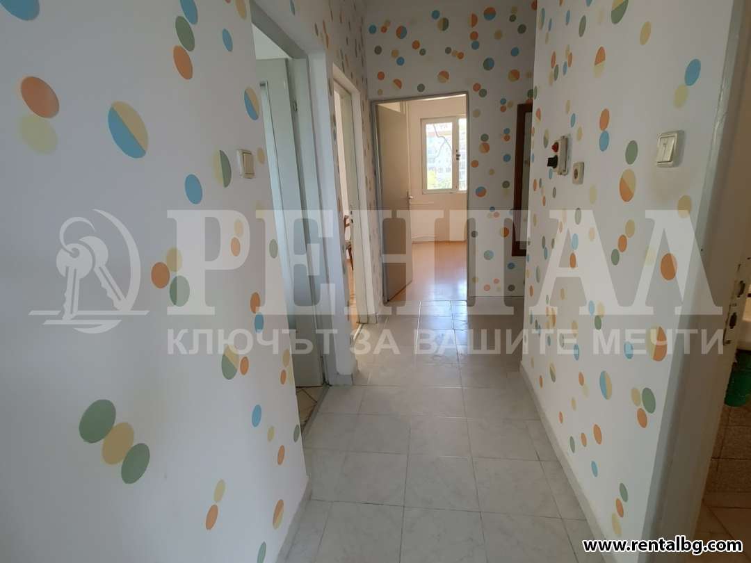 Предлагаме под наем голям и просторен апартамент в кв. Тракия, близо до Поликлиниката. Жилището разполага с две светли и просторни спални, голям и светъл хол в едно с трапезария и кухненски бокс, Г-образен коридор, тоалетна, отделно баня с перално помещение и вана, две тераси. Всички стаи са със сменена дограма. Жилището се предлага частично обзаведено, има хладилник, пералня, кухненски шкафове, два гардероба. Апартаментът е в блок с асансьор близо до магазини, училища и детски градини, детски площадки и паркове, в тих и комуникативен район, подходящ е за семейство. Отдава се под наем дългосрочно! ОФЕРТА 261095