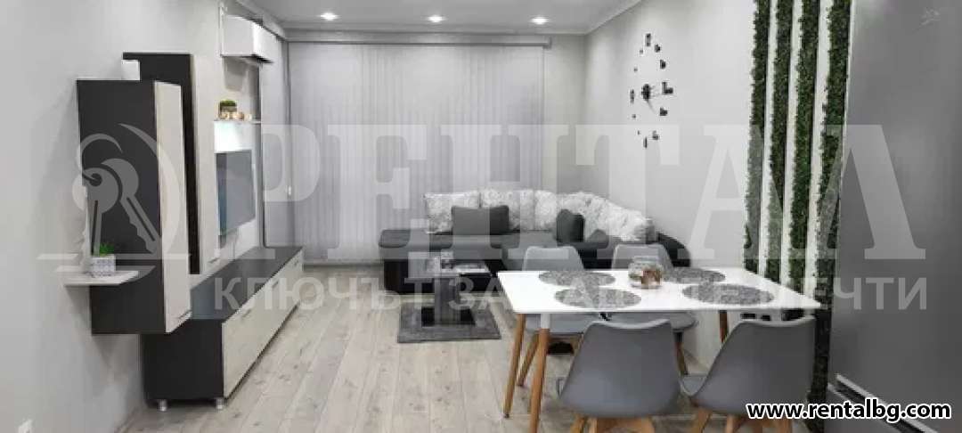 Предлагаме под наем двустаен апартамент, състоящ се от голям хол с широк кухненски бокс,спалня,баня и тоалетна,коридор,просторна тераса с красива гледка към вътрешния двор на комплекса и голямо мазе. Жилището е напълно обзаведено с всички необходими чисто нови електроуреди от висок клас. (Пералня, Аспиратор, Фурна, котлони, хладилник, Smart Android Телевизор,Хипер инверторни климатици от най висок клас,120л. Бойлер, Трапезна маса със столове, Голяма ъглова холна двойно разтегателна гарнитура, Холна секция, Чисто нов матрак с повдигащ механизъм в комплект със спален комплект, Голям шкаф за обувки и голямо портманто. Има окачен таван в целия апартамент с изолационна вата. В наемната цена не е включена такса поддръжка на комплекса. Към апартамента има голямо почти закрито от всички страни подземно паркомясто. ОФЕРТА 262531