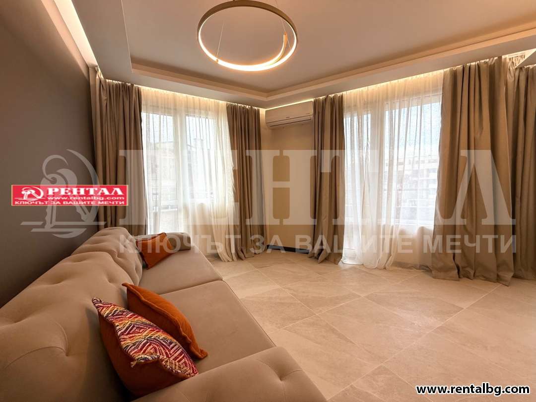 Агенция Рентал предлага чисто нов многостаен апартамент в идеален център. Имотът се намира в непосредствена близост до Стария град на Пловдив, с изглед към Небет тепе, на 3 минути пешеходно разстояние от Главната улица и Капана, с висок инвестиционен потенциал. Намира се на тиха и спокойна улица, в добре поддържана сграда от 2011 година с асансьор. Апартаментът е чисто нов, изцяло завършен по дизайнерски проект, напълно обзаведен и оборудван с всичко необходимо. Има отлично и функционално разпределение, което включва: входно антре, вграден кът с бойлер и пералня, просторна всекидневна и кухненски бокс с електроуреди (вградена миялна машина, фурна, керамични котлони и хладилник Gorenje), тераса, баня с тоалетна, три спални, втора тераса, прилежащо мазе към апартамента.