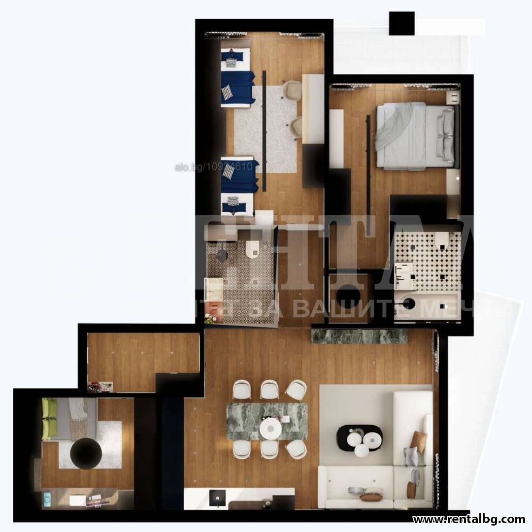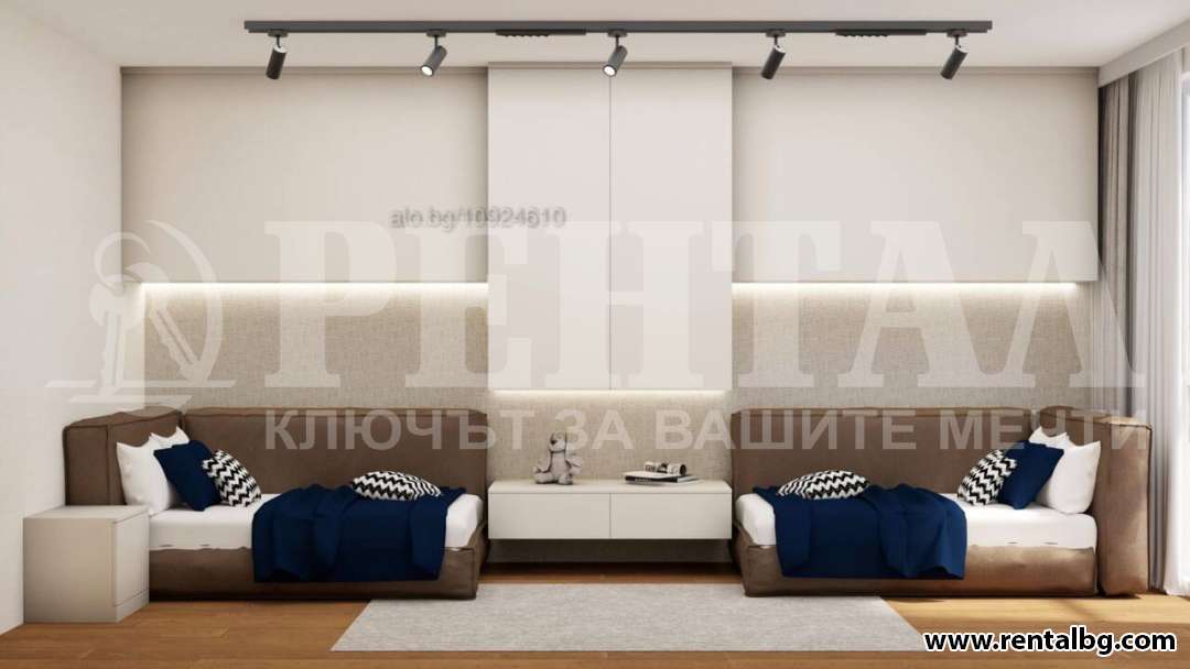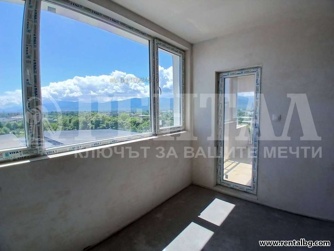 - Разпредерение: дневна с трапезария и кухненски бокс, голяма панорамна тераса с изглед към Родопите, детска спалня с баня и тоалетна, родителска спалня с баня и тоалетна, трета спалня или кабинет, килер, тераса към спалните, входно антре.