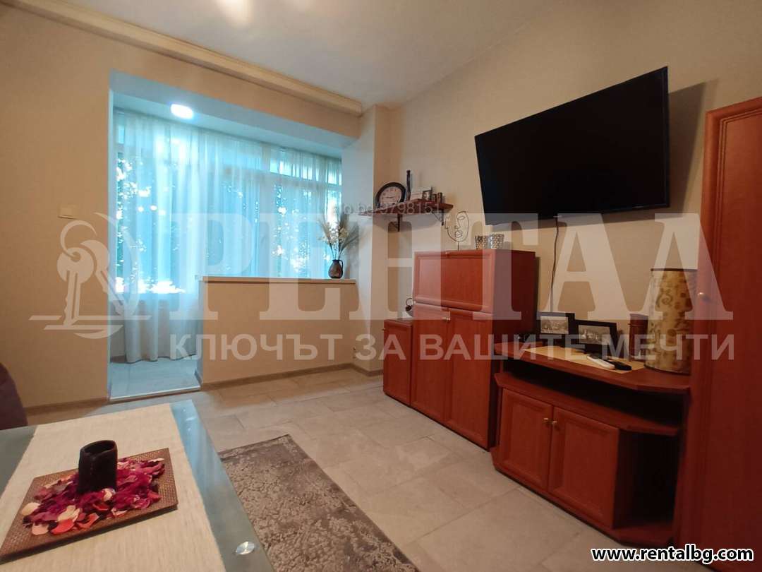 Предлагаме под наем двустаен апартамент, състоящ се от спалня, хол, отделно бокс, баня и тоалетна, тераса. След основен ремонт- първи наематели. Нова дограма, врати, подови настилки, ел. инсталация, ВИК, шпакловка, боя, мебели, два климатика. Блок с контролиран достъп и възможност за паркиране, на 5 мин пеша от Тримонциум. Обзаведен, притежаващ всички удобства на съвременно домакинство. ОФЕРТА 263862