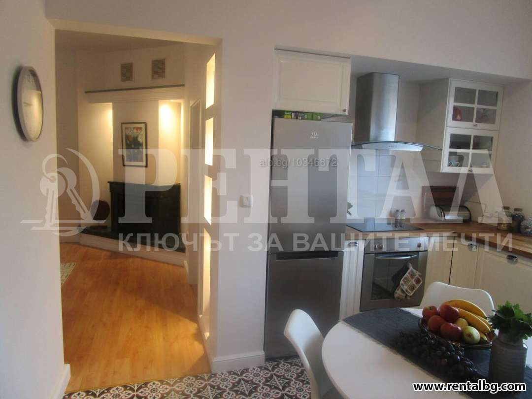 Апартаментът е след основен ремонт и напълно обзаведен, вътрешен с изложение изток-запад. Хол с действаща камина, кухня-трапезария, две спални, баня-тоалетна, две малки тераси с гледка към Сахат тепе. Кухнята е нова, с вградени съдомиялна и пералня. Високи 3 м тавани. Отоплението е с климатици. Улицата е тиха и спокойна, паркирането е на улицата на две мин. от Главната улица, Градската градина , Бунарджика. Паркиране на улицата с годишен договор по адрес.