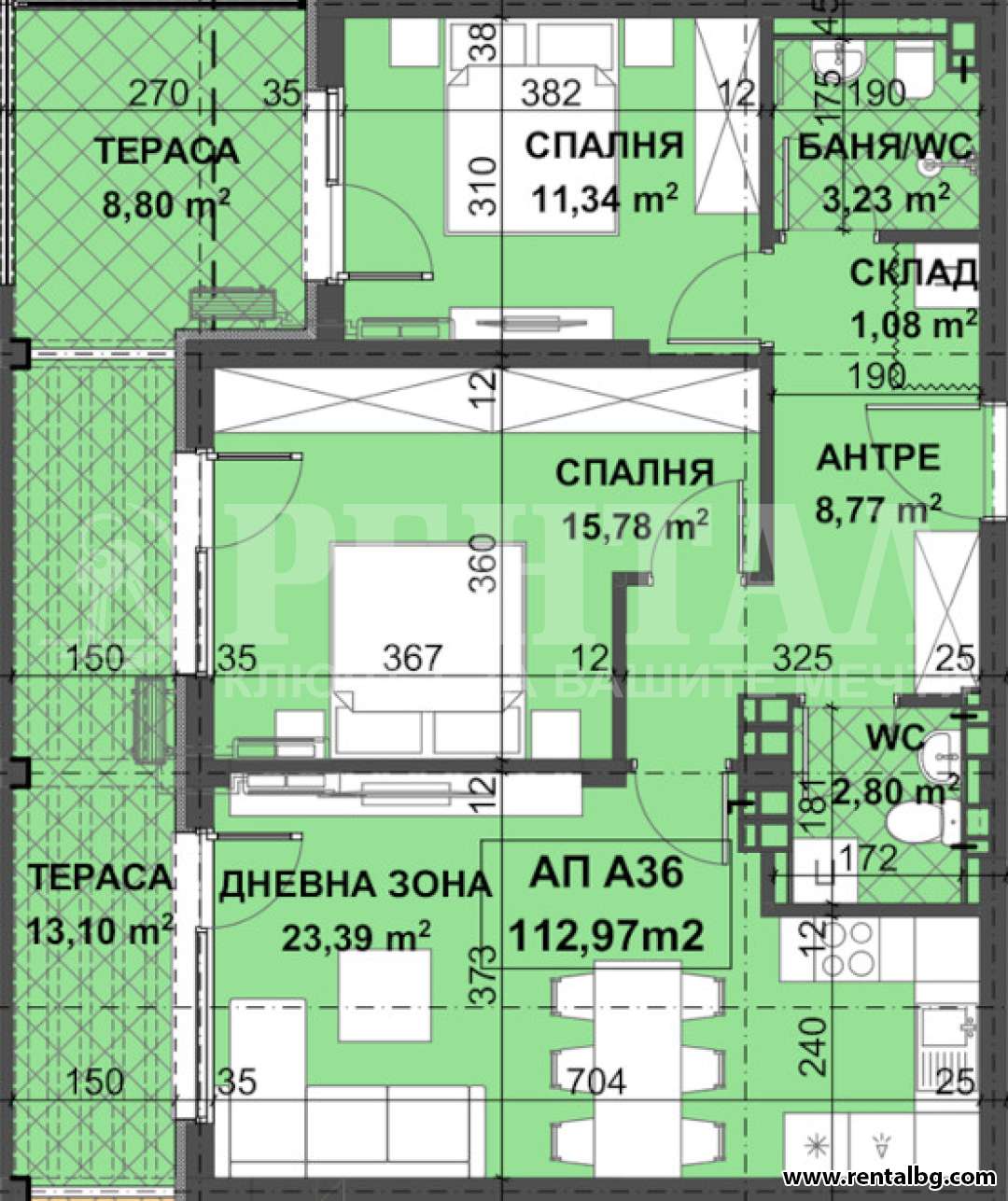 ОФЕРТА 237716 Частично обзаведен ! Състои се от антре, дневна с трапезария и кухненски бокс, две спални, две тераси, баня с тоалетна, отделна т ...